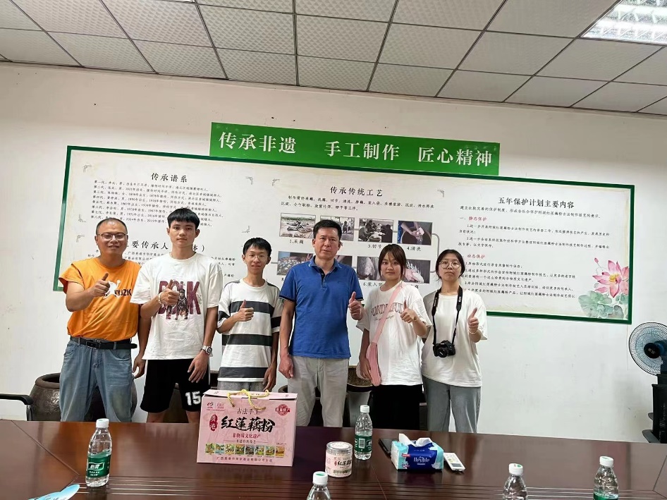 贡献青春力量,书写青年担当。7月28日,广州华立学院的“丹心筑梦,弘扬非遗队”前往广西贵港覃塘区开展为期2天的三下乡社会实践活动。出发之前我们得知当地的红莲藕粉是申请了非遗专项,我们对此很感兴趣。非物质文化遗产既是历史发展的见证,又是珍贵的、具有重要价值的文化资源,作为当代大学生,我们也是想结合自身能力,助力非遗文化发展,推广非遗项目,推动当地经济发展。