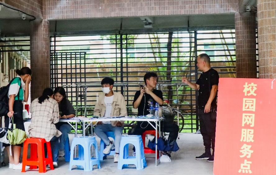 最后,机动组工作人员带领新生前往各自的宿舍。宿舍楼下设有校园网服务点,方便新生办理校园网服务。至此,新生的报到流程已全部结束。