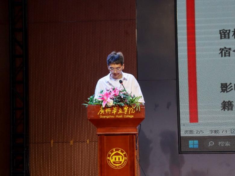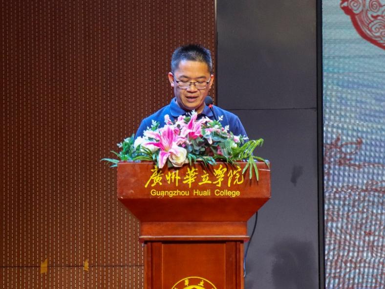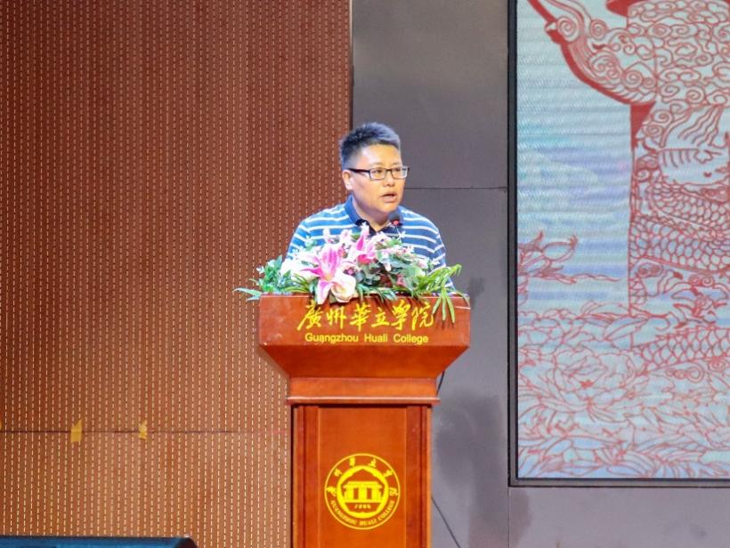 传艺学院副院长王睿代戴剑平院长发表寄语。他对新生们加入广州华立学院表示热烈欢迎,建议新生们学会深入思考,遵循理性和逻辑、多读书、多调查、多分析,严于律己并遵纪守法。希望新生们能在未来的大学生活中,不断成长、砥砺前行。