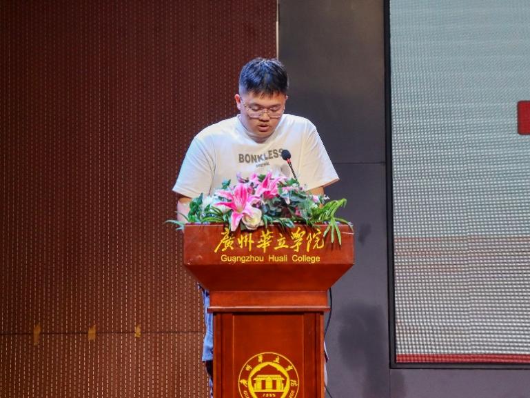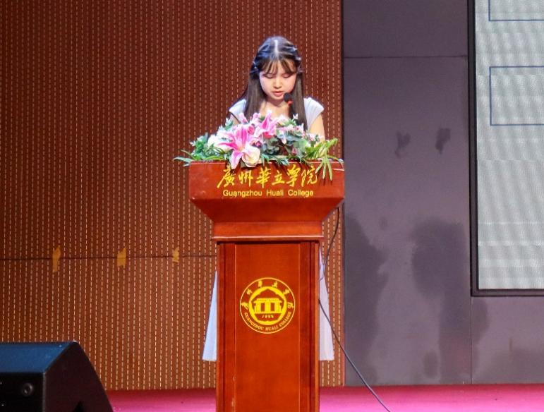 最后,23新闻3班林绮姗同学代表23级普高新生进行演讲。她“以秋意绘喜悦”,表达了来到广州华立学院的欣喜与对未来的期待。林绮姗同学表示要谨记校训“团结、勤奋、求是、创新”,把大学看作一条崭新的道路并鼓励同学们要明确自我目标、做好职业规划,为未来而努力奋斗。