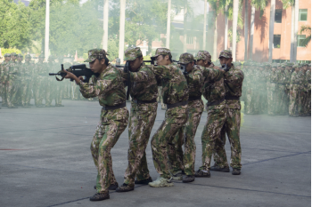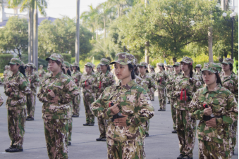 广州华立学院校长刘洁生教授做军训总结。他表示,军训只是进入大学的第一课,他希望大家将军训收获的家国情怀、宝贵品格、良好习惯和深厚友谊融入精神图谱,化为未来生活中持久进步的前进动力。鼓励大家不忘初心,坚守理想,报效祖国,努力成长为可堪大用的栋梁之才。