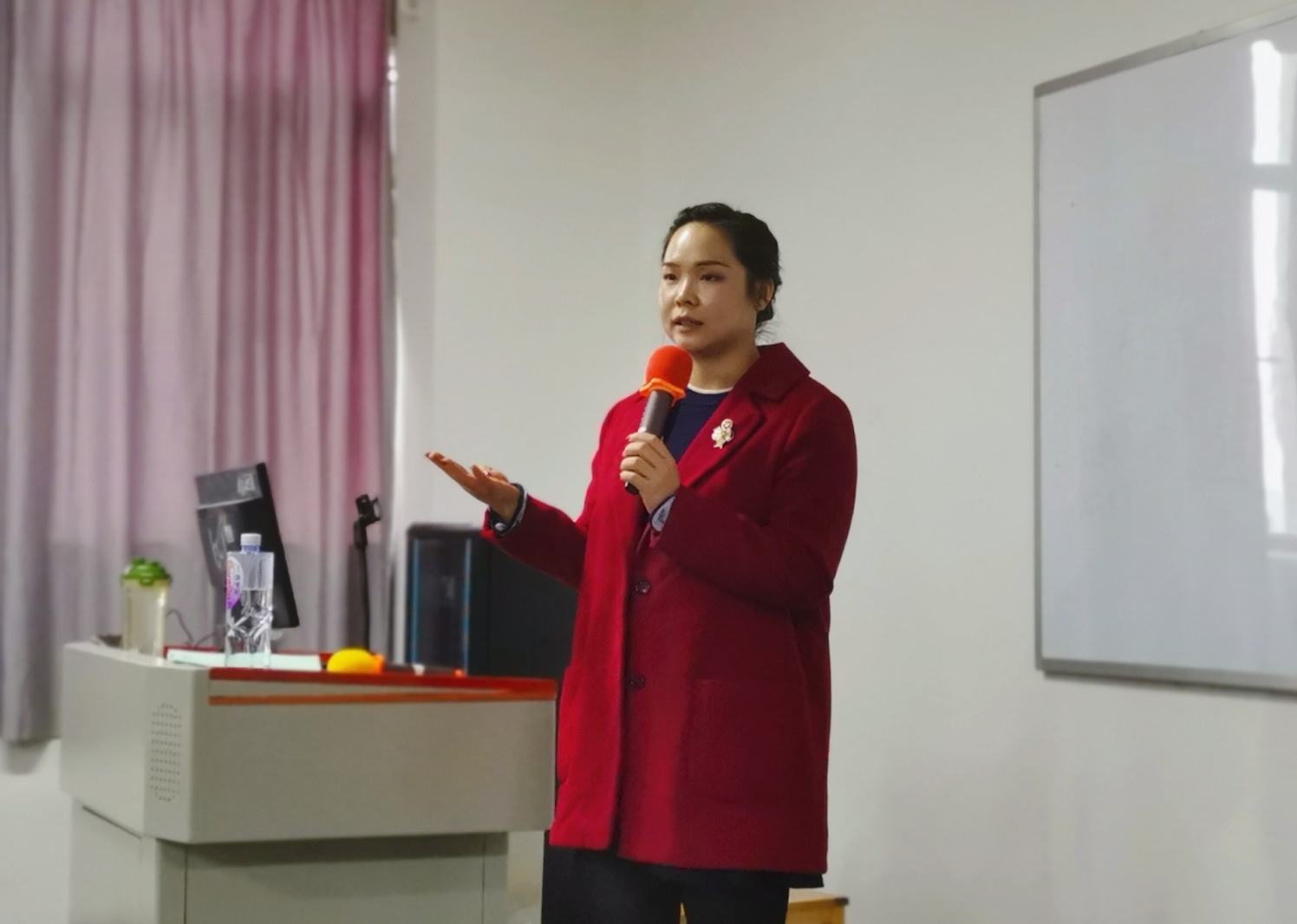(东富集团行政人资总监兼总经办主任黎燕华在宣讲会上)