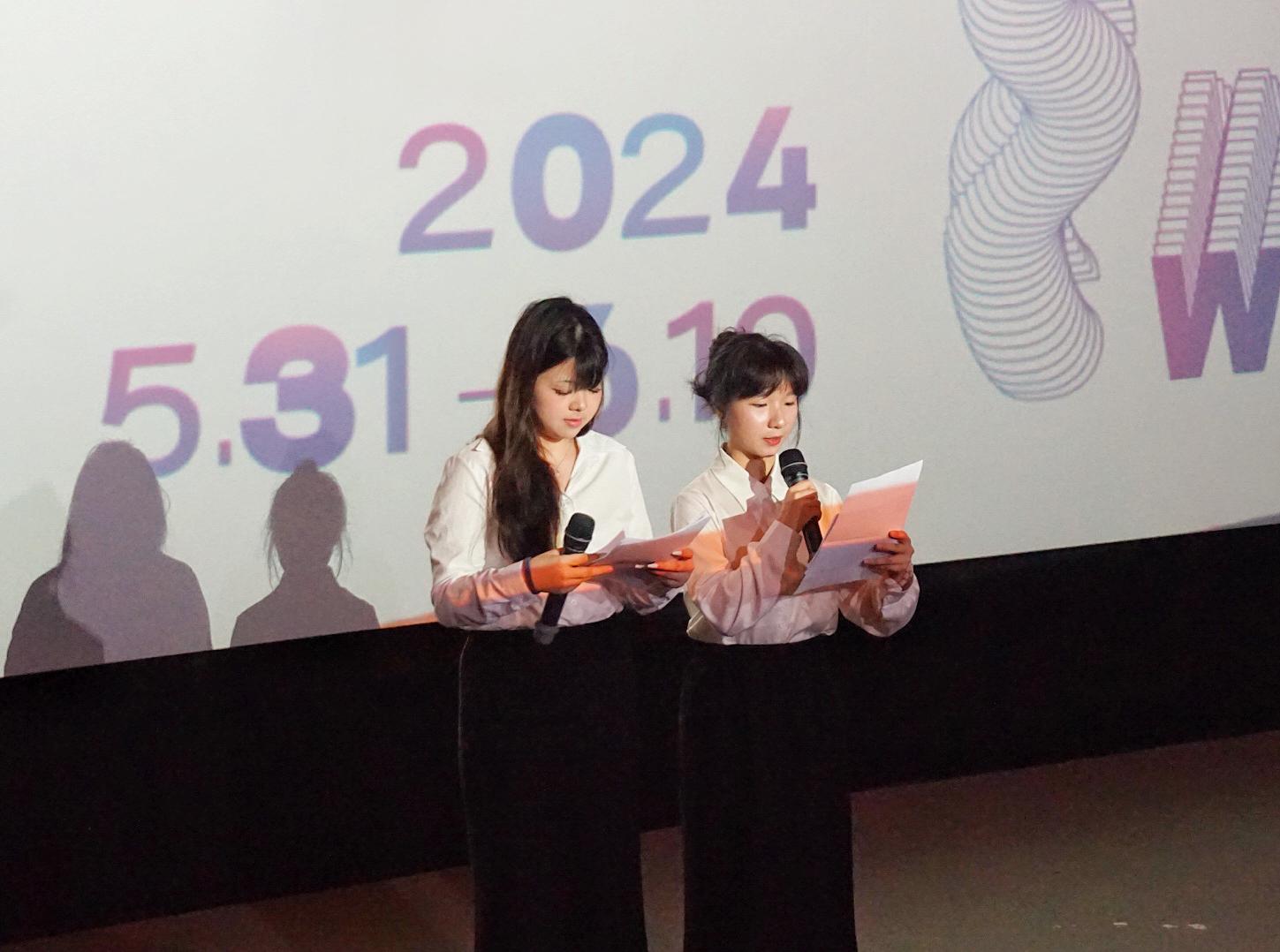 为提升学子理论知识与实践技能,展示学院教育成果。2024年6月5号上午9时,广州华立学院传媒与设计学院2024届毕业设计展暨电影展映及观影交流会在1978文化创意园隆重开幕。 本次活动由黄炜瑜和汤雅婷共同主持。
