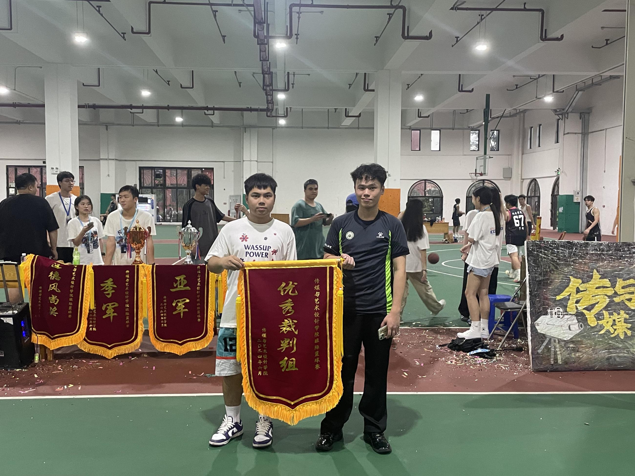 在篮球场上,球员们都尽情挥洒运动激情,展现自我风采,谱写青春,为我们奉上一场精彩绝伦的篮球比赛。在本次比赛中,裁判组秉持公平、公正、实事求是的态度和稳健、热情、大公无私的精神,统一尺度,全心全意为赛事护航,被评为优秀裁判组,何俊铭师兄为其颁奖。