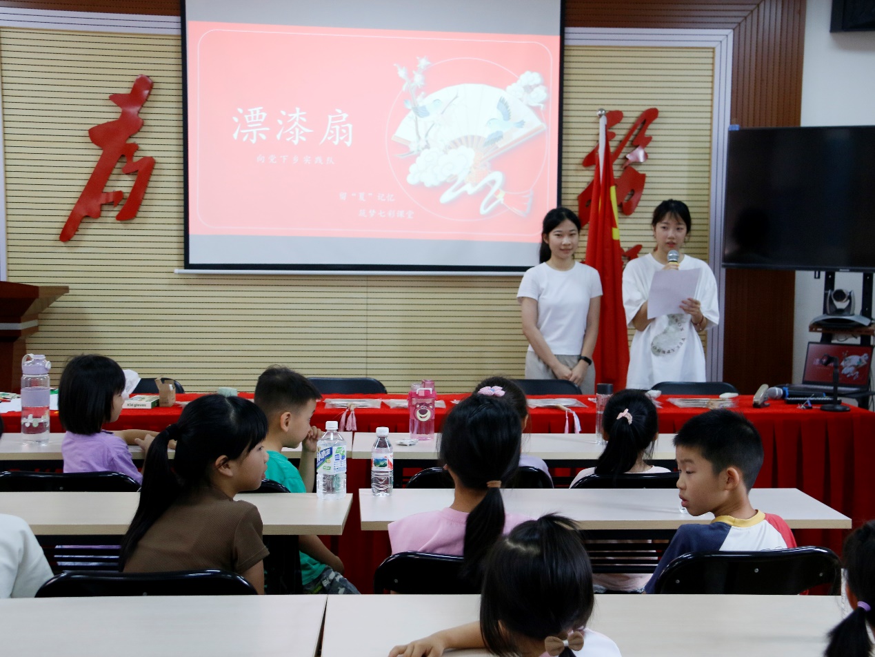 在这温暖的炎炎夏日时光里,来自传艺学院的向党下乡实践队伍走近乡村,开展了一场别具意义的三下乡活动。活动开始的第一天,我们开展了漂漆扇义教活动,希望通过漂漆扇这种非遗传统文化,打开小孩子们的艺术想象之门,唤醒小朋友们的艺术灵魂。