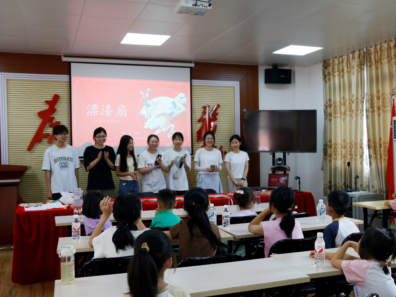 “小老师们”给小朋友们讲解漂漆扇的制作方法,然后小朋友们亲手制作出属于自己的独一无二的漂漆扇作品,每一把扇面都是创意与灵感的结晶。
