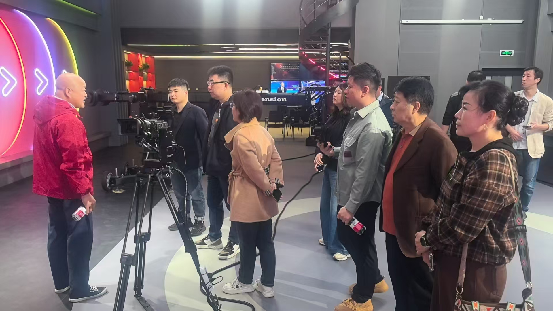 在浙江传媒学院胡一梁教授与相关人员的陪同和带领下,调研团参观了智能媒资管理与制作实验室、数字调色实验室、媒体智能生成实验室、新型视觉传播实验室、媒体创新实验室等。其中在新型视觉传播实验室,胡一梁教授为众人对实验室空间及功能的设计做了详细介绍,并现场展示了全景跟踪拍摄系统和节目全流程自动化生成系统,让老师们深刻感受到传媒数智化科技赋能教学创新应用的魅力。