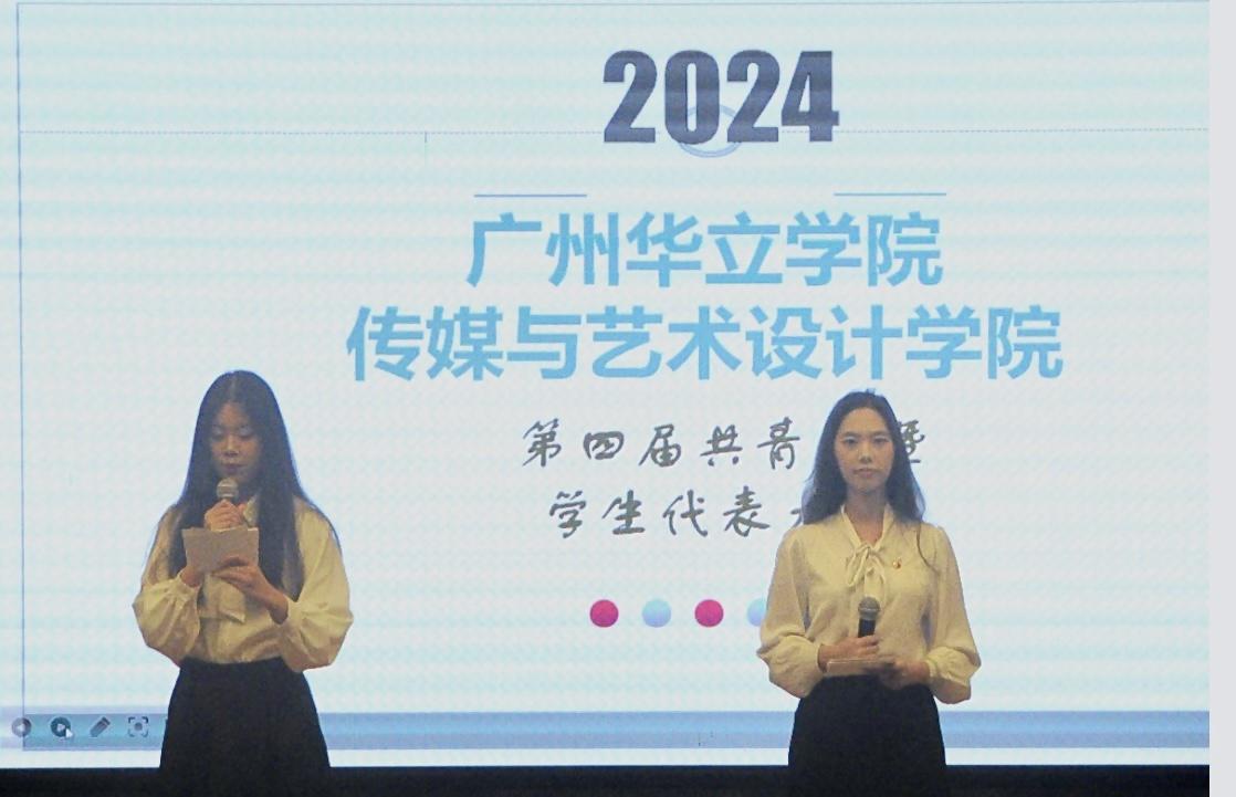 广州华立学院传媒与艺术设计学院第四届共青团委员会委员的选举工作如期进行,为进一步加强我院广大团员青年的思想引领,推动学院的高质量发展,引领他们积极投身于中国式现代化建设,传媒与艺术设计学院第四届共青团暨学生代表大会于2024年11月26日在图书馆二号报告厅隆重召开。本次会议由梁文蔚、颜锞共同主持。