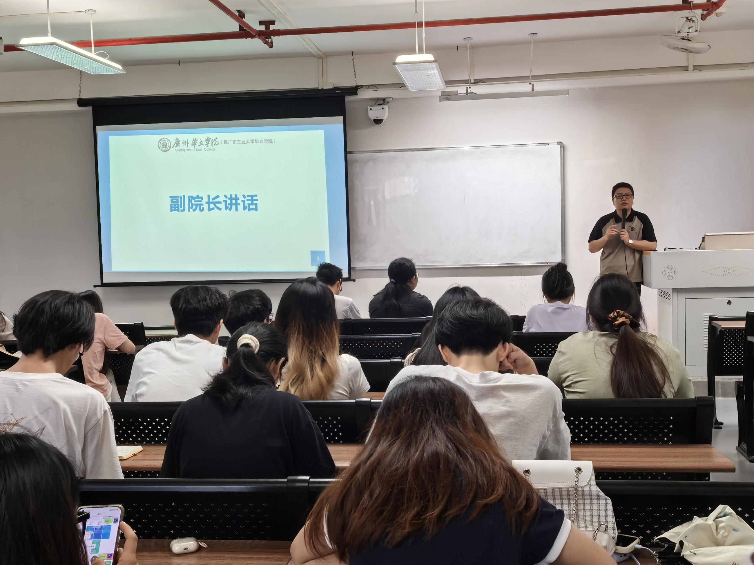 大会第二项议程,负责实习版块工作的教务员黎健辉老师介绍实习时间及注意事项。他指出,外出实习也是各个同学大学学习生涯中不可缺少的一部分,是课堂理论教学的延伸和补充。他希望每位同学都积极参与所在单位举办的各项活动,遵守劳动纪律,定期向学校及实习指导老师汇报实习情况。黎健辉老师展示了校友邦平台的各流程业务,详细阐述了相关实习材料的填写要求,提醒尚未激活校友邦的同学及时激活校友邦,为之后上传实习材料提前做好准备。