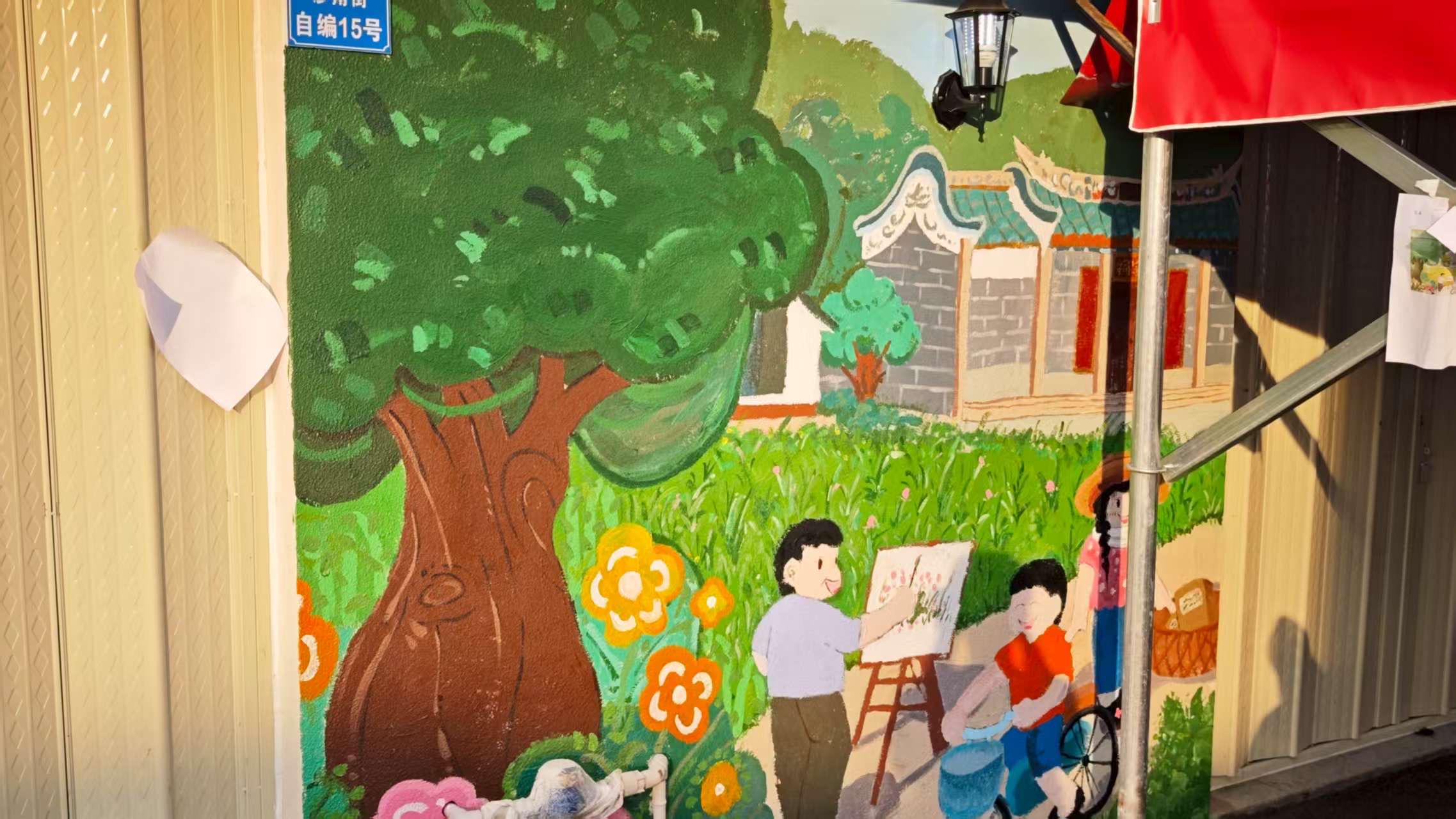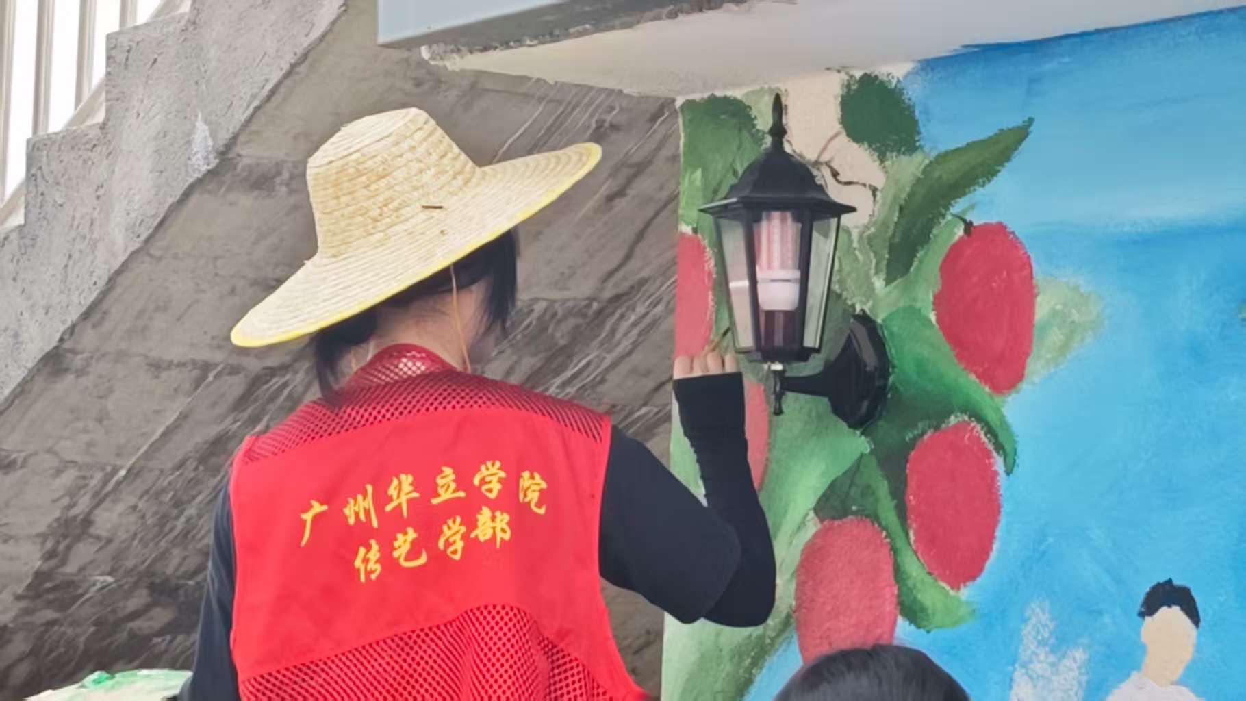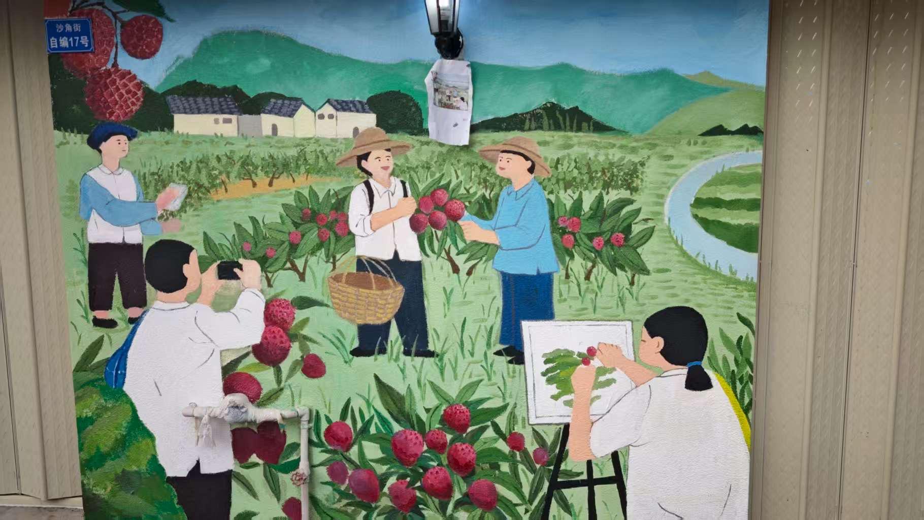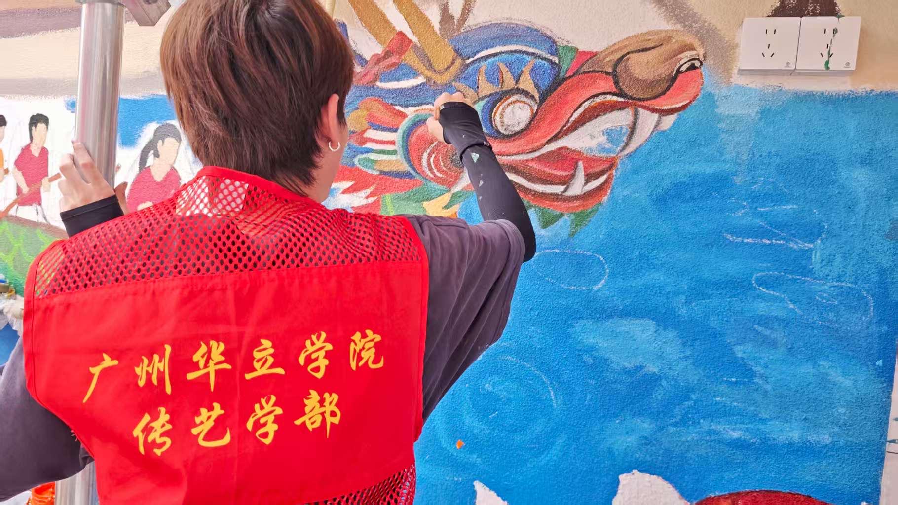今日的墙绘已初现宏阔气象,实践队员们共同构成岭南乡村的文化长卷,包含着龙舟、荔枝等当地优秀传统文化元素,一幅乡村文化与精神文明建设的蓝图在眼前。