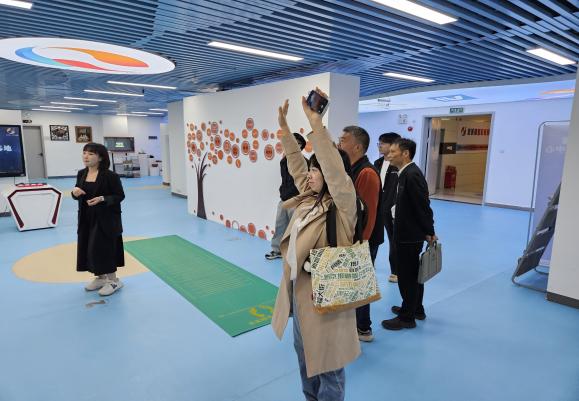接下来双方重点参观了“增城融媒科教研学基地基地”的特色功能区域。基地二层以 “智能科技 + 传媒实践” 为核心,展示智能机械臂、VR 设备等,串联电视技术发展展、体感互动区及 3D 打印非遗展区,为学院智能传播教学提供新思路。