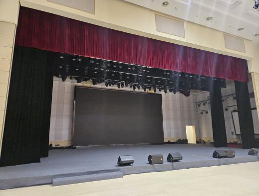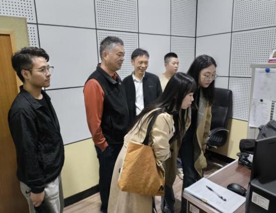 接着,一行人走进可容纳 600 人的大型演播厅。负责人讲解其先进灯光音效系统、多机位布局及在大型活动直播、专题节目录制中的应用,教师结合教学实践需求,就演播厅运营、技术运维等交流。
