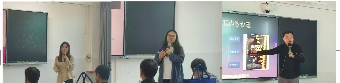刘子斌老师在《导演基础》课程中营造“每一次上课都像到了片场”的沉浸式教学环境。此外,陈璐、孔令嫣三位老师分别展示了《短视频创作》《数字音频制作》等课程的教学设计。