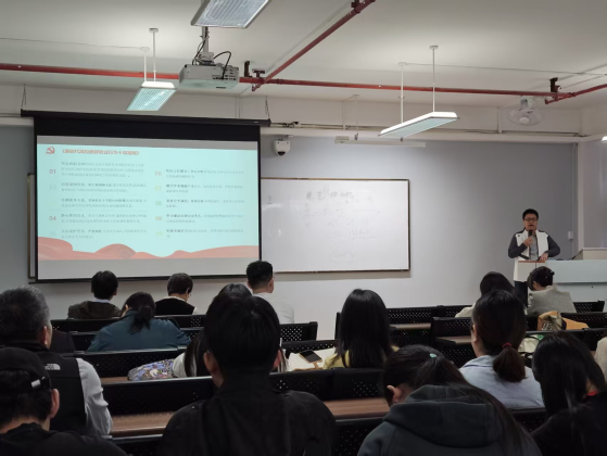 学部党委委员曾令鑫老师以“划底线、明方向”为重点,带领全体教职工学习《新时代高校教师职业行为准则》,解读其中关于坚定政治方向、自觉爱国守法、传播优秀文化、潜心教书育人等关键内容,强调教师应恪守学术规范、秉持公平诚信、坚守廉洁自律,做到言行雅正,将立德树人贯穿教学科研全过程。