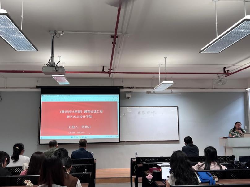 各课程积极探索教学模式创新。“景观设计原理”采用OBE成果导向教育,构建“目标、实施、评价、改进”闭环体系,推行“4+1”教学体系,融合项目驱动、翻转课堂与AI技术;“建筑与景观设计”搭建AI+智慧课程平台,引入“设计竞赛式”教学,组织学生参与实战项目;“设计概论”依托学习通平台构建混合教学模式,通过案例教学与经典阅读营造自主学习氛围;“展示空间设计”将艺术创作经验融入教学,组织实地考察,采用双人合作完成期末作业。