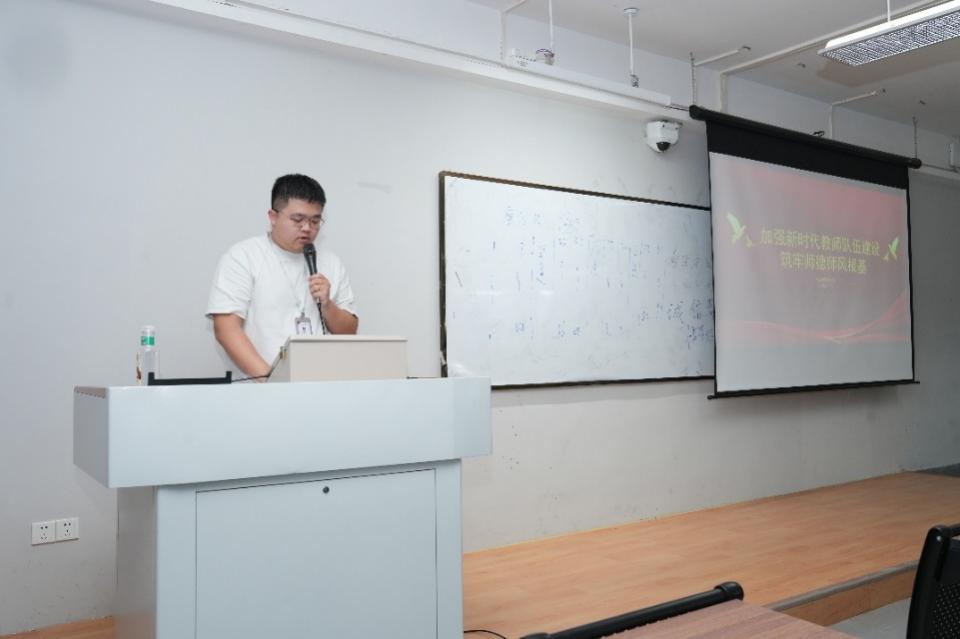 会上,刘政威老师强调了师德师风建设的重要性,并传达了《新时代高校教师职业行为十项准则》《中共中央 国务院关于弘扬教育家精神加强新时代高素质专业化教师队伍建设的意见》等核心文件,同时还组织学习了高校违反教师职业行为十项准则的典型案例。