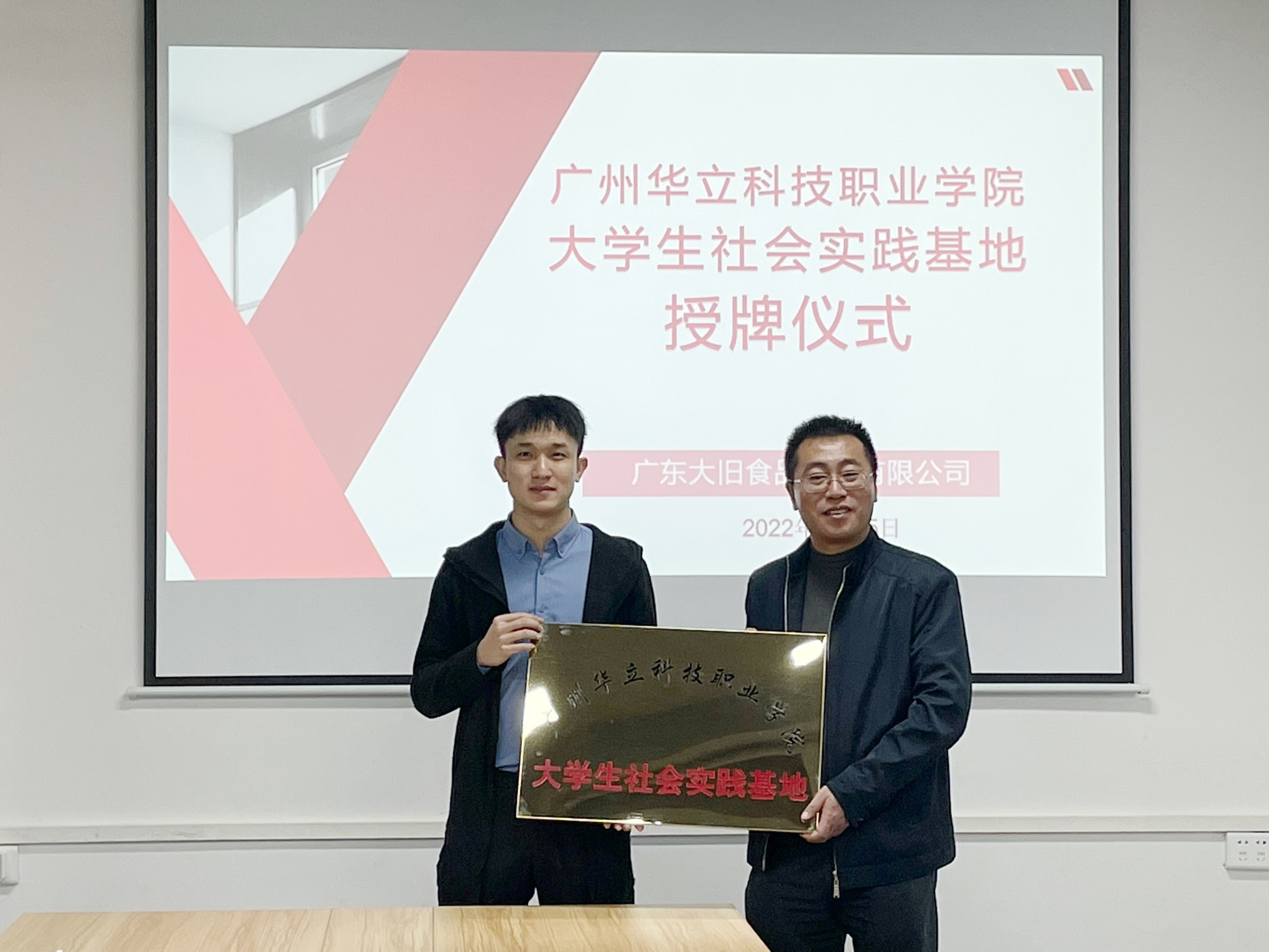 2022年1月15日,广州华立科技职业学院高尧来副校长率队到茂名市·广东大旧食品科技有限公司了解华立学子创业就业情况,并举办“广州华立科技职业学院大学生社会实践基地”授牌仪式。华立优秀创业学子朱富铭在校期间做跨境电商创业项目,毕业后曾任广东天骄尚品网络科技有限公司副总经理,后返乡创业,在当地政府的大力支持下,联合创办了茂名陆地诺亚方科技有限公司、广东大旧食品科技大有限公司,旗下拥有“积好货”数字化零售平台,已在成立初期获得200万人民币的天使轮融资,目前合作农产品基地超过100亩;助力当地农副产品从田间地头到走向产品化、市场化,也以此为契机吸引更多的年轻人加入返乡创业的大军中,为家乡振兴的发展增添风采,与此同时,于2021年初推出“爪出道”陈醋鸡爪上生产线,打造新消费品牌项目,深受广大消费者欢迎,其创办的企业受到社会广泛关注,具有一定的社会效益和经济效益,成为了当地乡村振兴的标杆企业。当地政府,乡亲父老对他的工作表示莫大的支持和鼓励,委任他为茂名电白区农村青年创业协会会长,最近还光荣当选为镇人大代表,成为当地耀眼的创业明星。