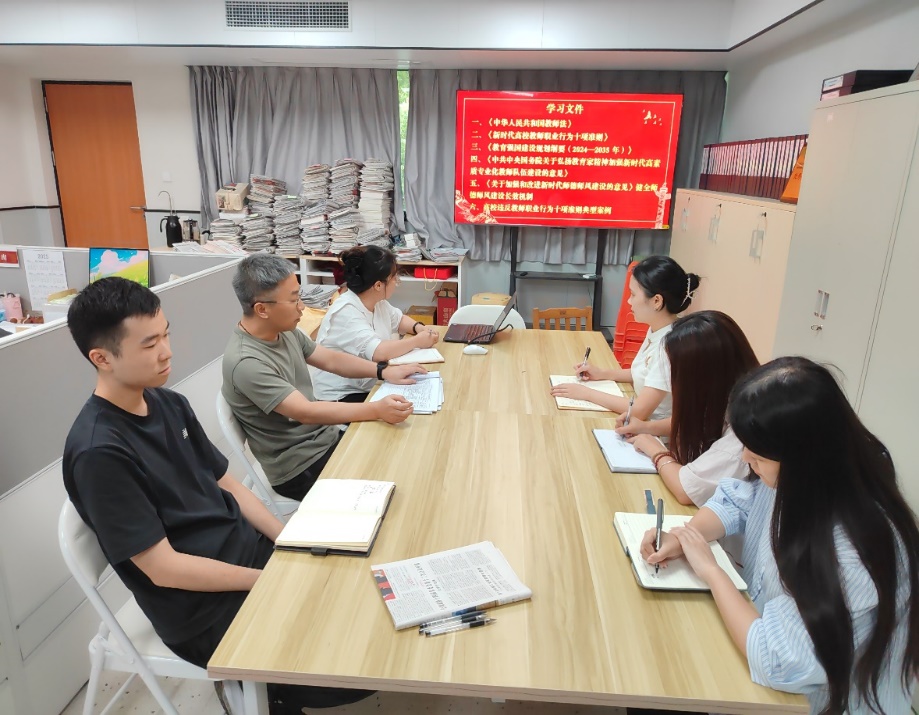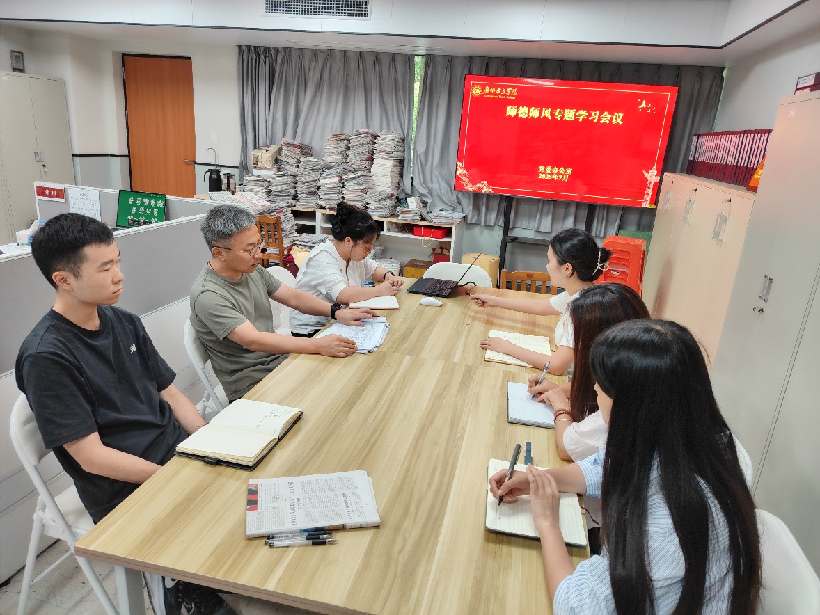 为深入贯彻党的教育方针,筑牢师德师风根基与防线,不断提升管理服务人员的职业道德素养与作风形象,筑牢思想防线,2025年7月7日-7月8日,党委办公室组织召开师德师风专题学习会议。会议由党委办公室主任翦俊伟主持,党委办公室全体工作人员参加学习。