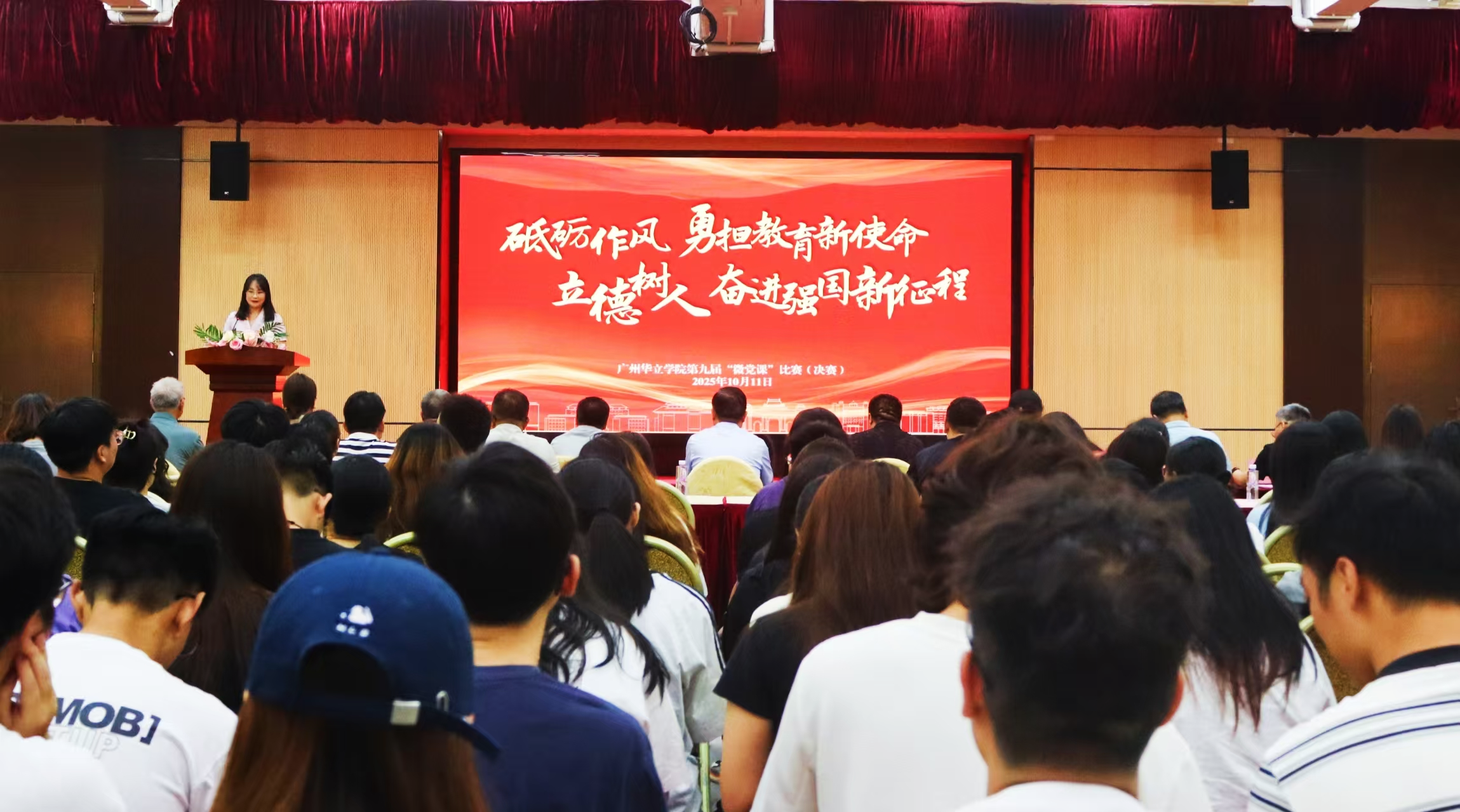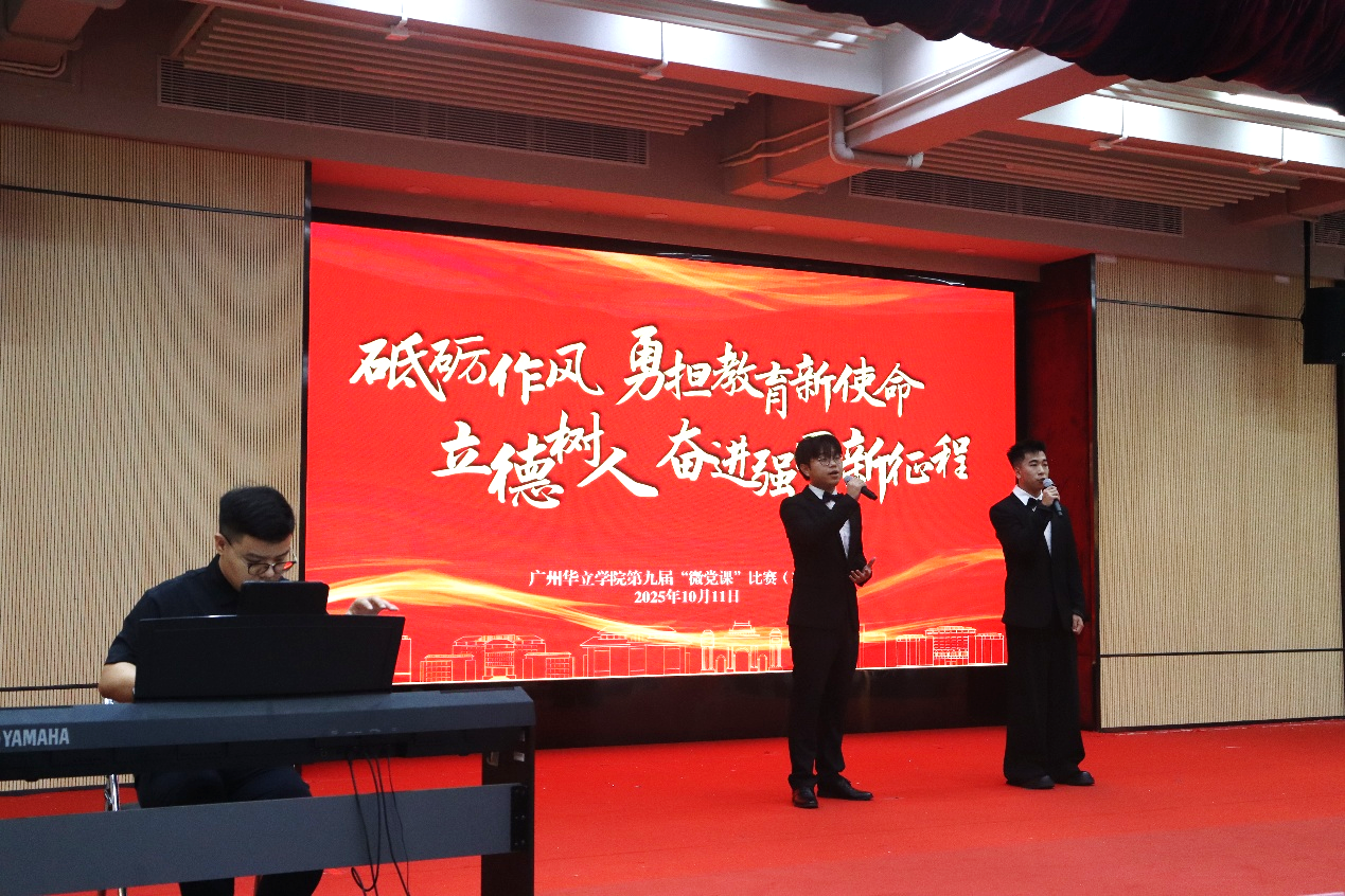 2025年9月25日至10月11日,广州华立学院以"砥砺作风勇担教育新使命,立德树人奋进强国新征程"为主题,在图书馆三号报告厅举办第九届微党课比赛。赛事历时 17 天,经初赛、决赛两阶段角逐,为全校师生带来了一场意义深刻的精神洗礼。