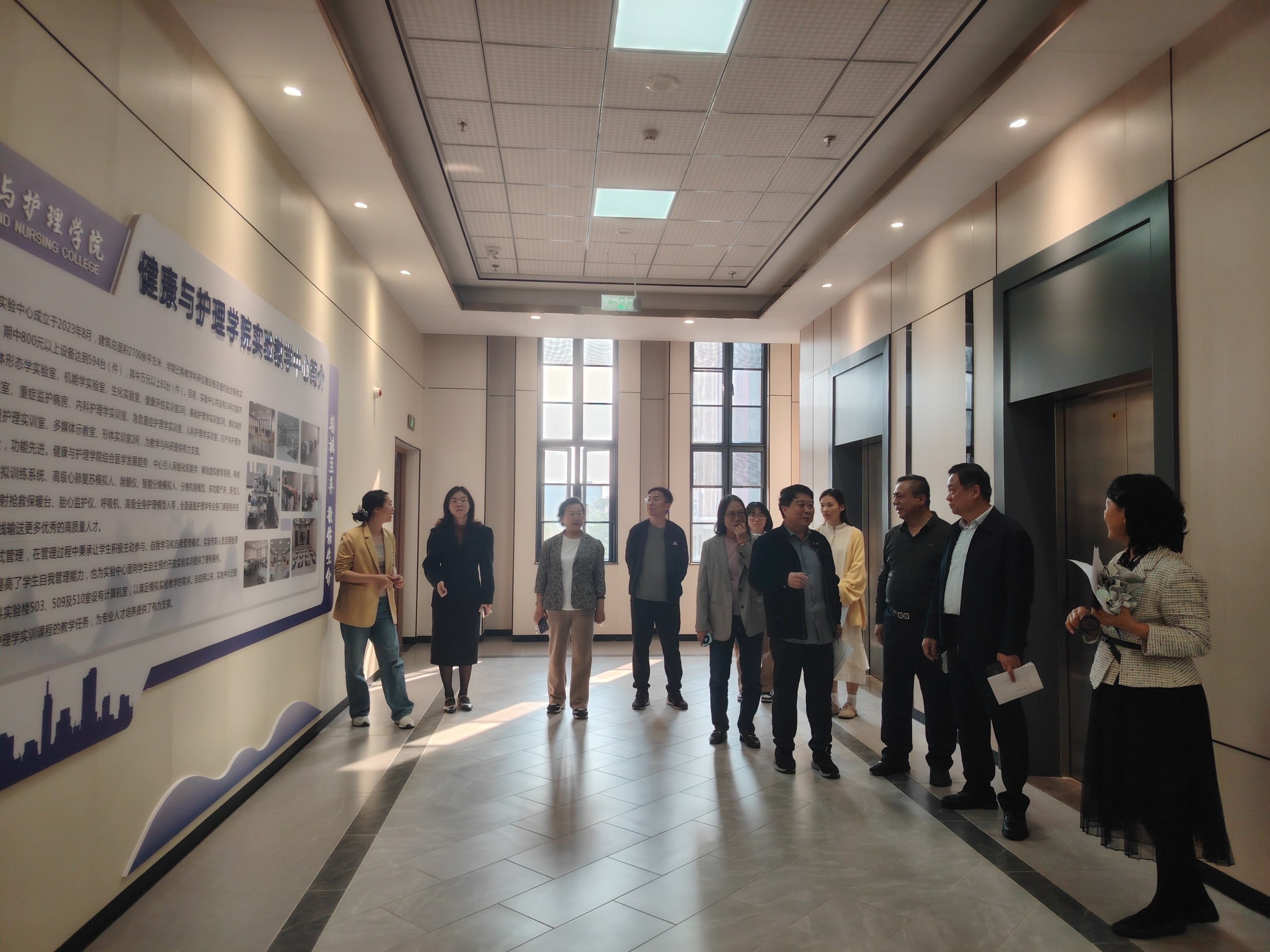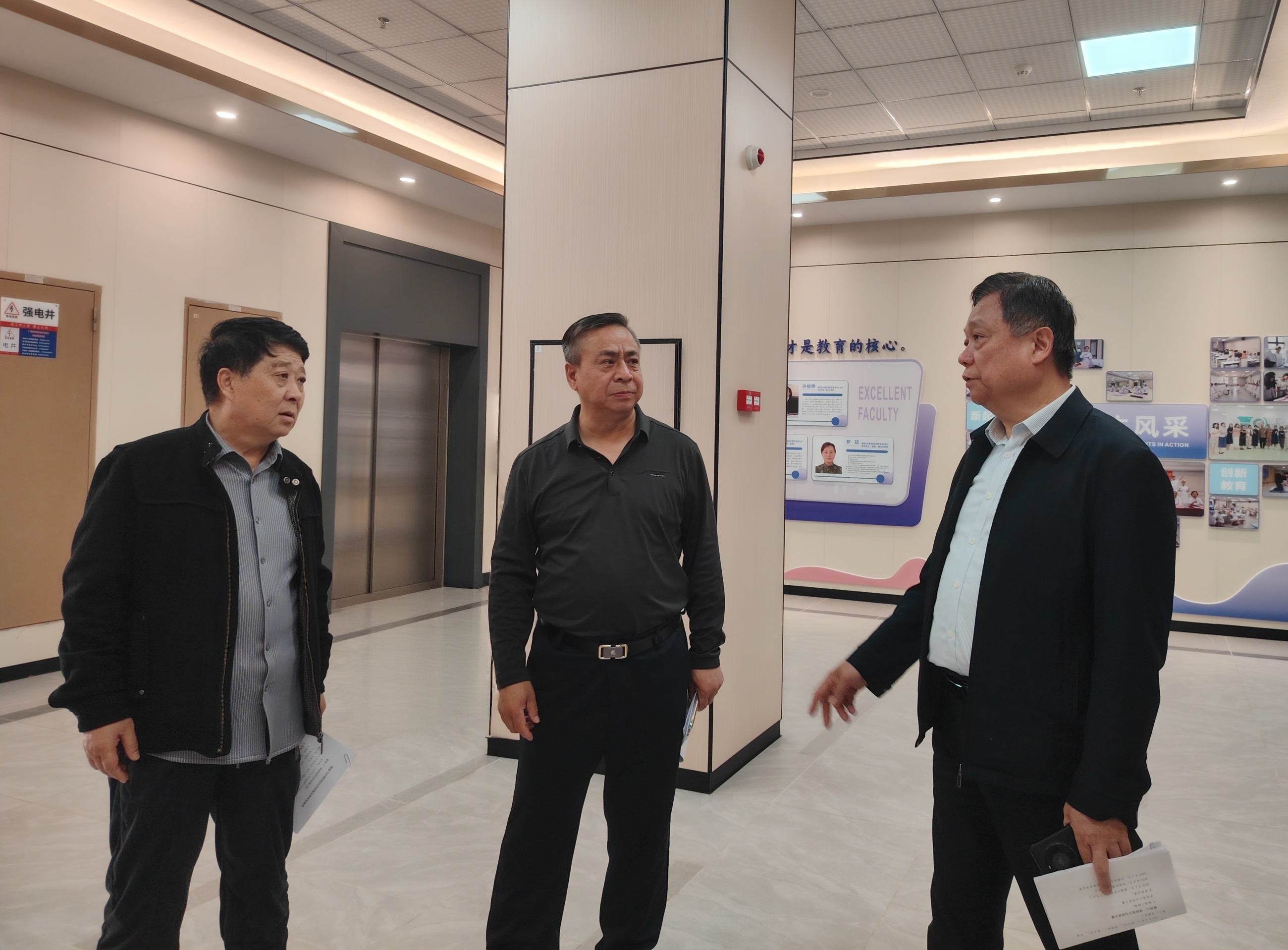 随后,校领导先后前往马克思主义学院、体育学院、智能制造学院、健康与护理学院、药学院和教育学院,逐一检查各学院 “一院一品” 特色文化建设、文化阵地打造等工作,认真听取各学院关于迎评促建、文化育人与专业特色融合的工作汇报,现场查看建设成果、梳理存在问题、明确改进方向。
