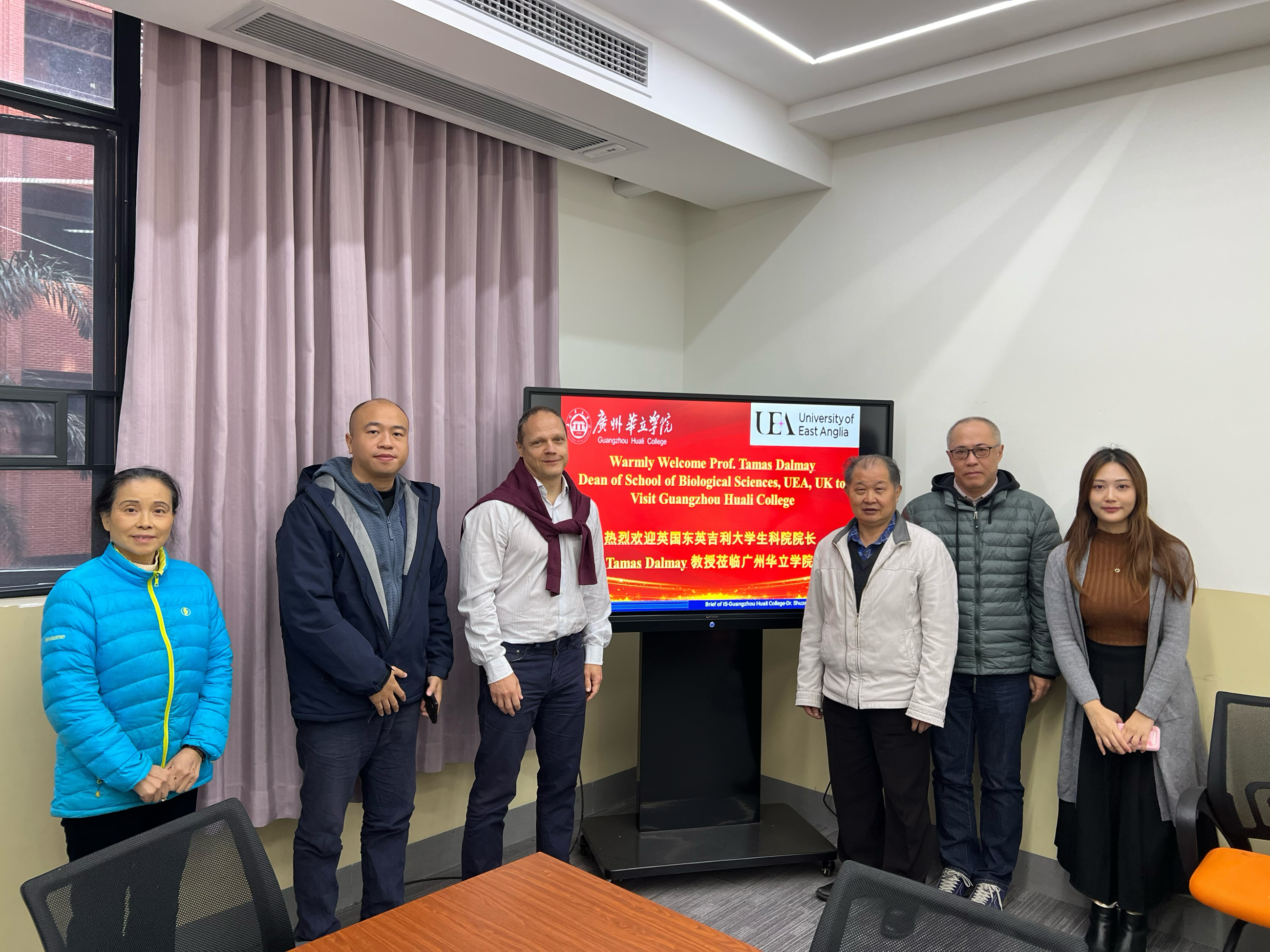 2024年12月30日,英国东安格利亚大学(University of East Anglia, 简称UEA)生物科学学院(Biological Science)院长Tamas Dalmay教授到访广州华立学院国际学院参观交流。国际学院院长唐书泽教授在4-212会议室热情接待了Tamas Dalmay教授并进行座谈交流。国际学院杨雪松教授,直属支部书记麦文桢博士,国际新闻教授李異平博士,国际项目办梁傲天老师和黄钰晶老师陪同。