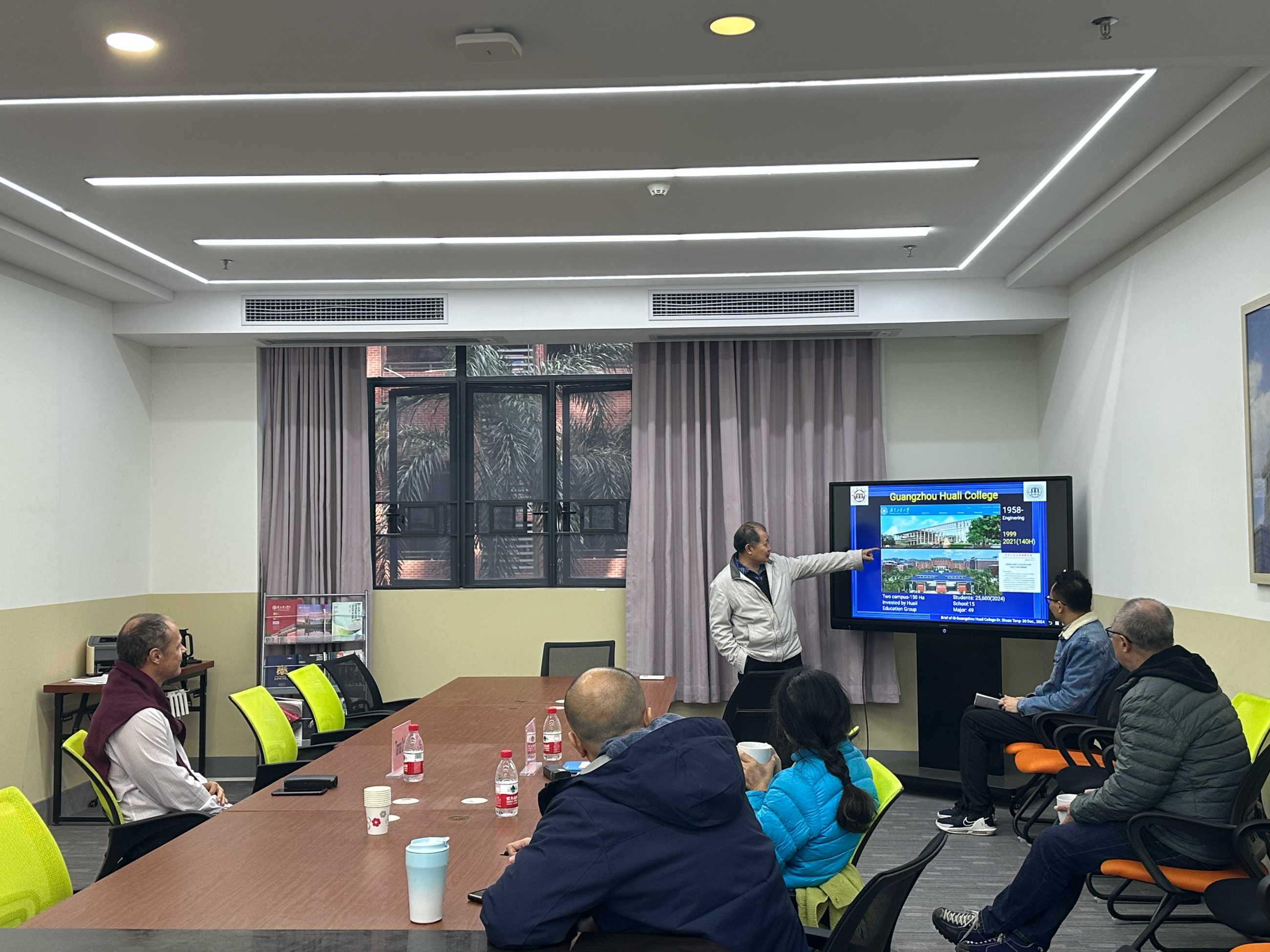 唐书泽院长向客人简要介绍了广州华立学院的发展历史、校园环境、办学规模、学科专业特色,重点介绍了国际学院独特的全英语教学平台、国际化师资队伍和国际合作项目。唐院长期望在学分互认“3+1”“2+2”、学生交换等领域与UEA合作,专业可以是国际学院现有的全英语授课专业,也可以是UEA的所有专业,尤其是UEA的优势专业如护理等。