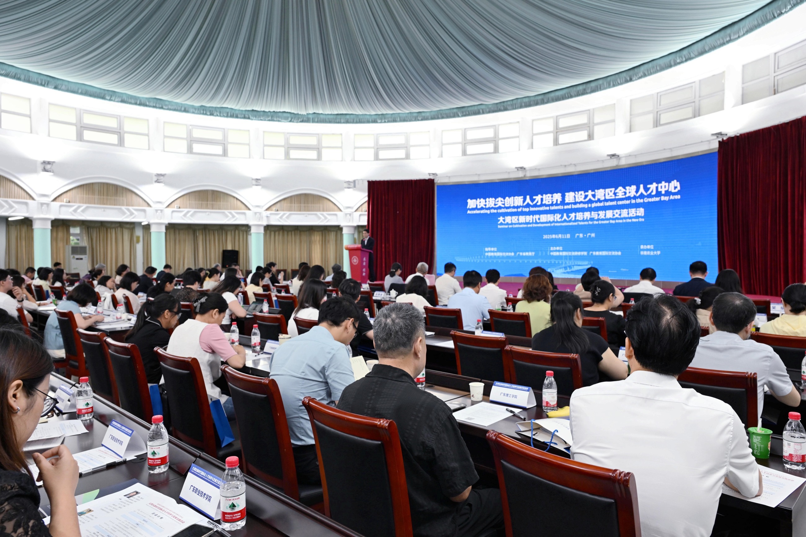2025年6月11日,大湾区新时代国际化人才培养与发展交流活动在华南农业大学举行。此次活动由中国教育国际交流研修学院与广东教育国际交流协会联合主办,华南农业大学承办。来自政府、高校、智库、国际组织的百余位相关领导与学者共聚一堂,围绕“大湾区全球胜任力人才培养与发展”主题,通过讲座分享与圆桌论坛,共同探讨大湾区国际化人才培养的未来。国际项目办梁傲天老师代表国际学院受邀参会。