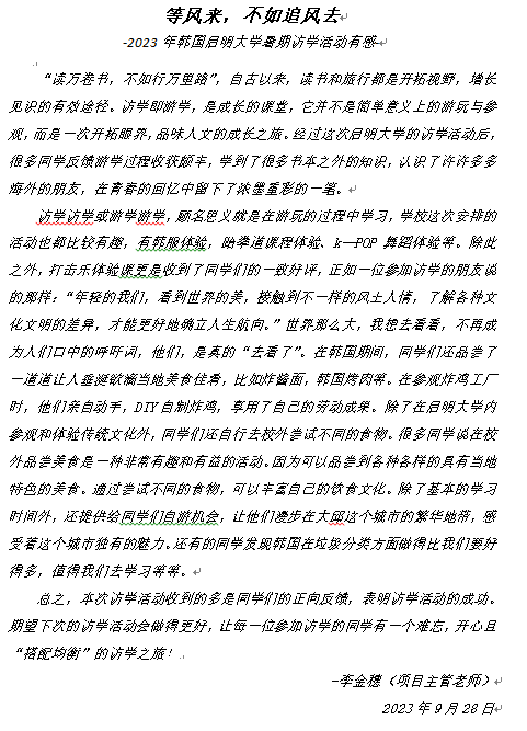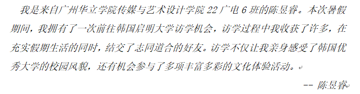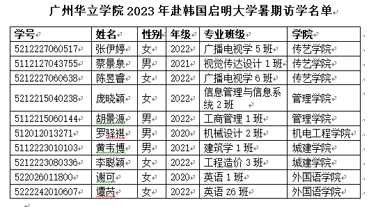 广州华立学院2023年7月选派的首批赴韩国启明大学暑期访学学生于2023年7月完成访学任务,平安顺利返校。