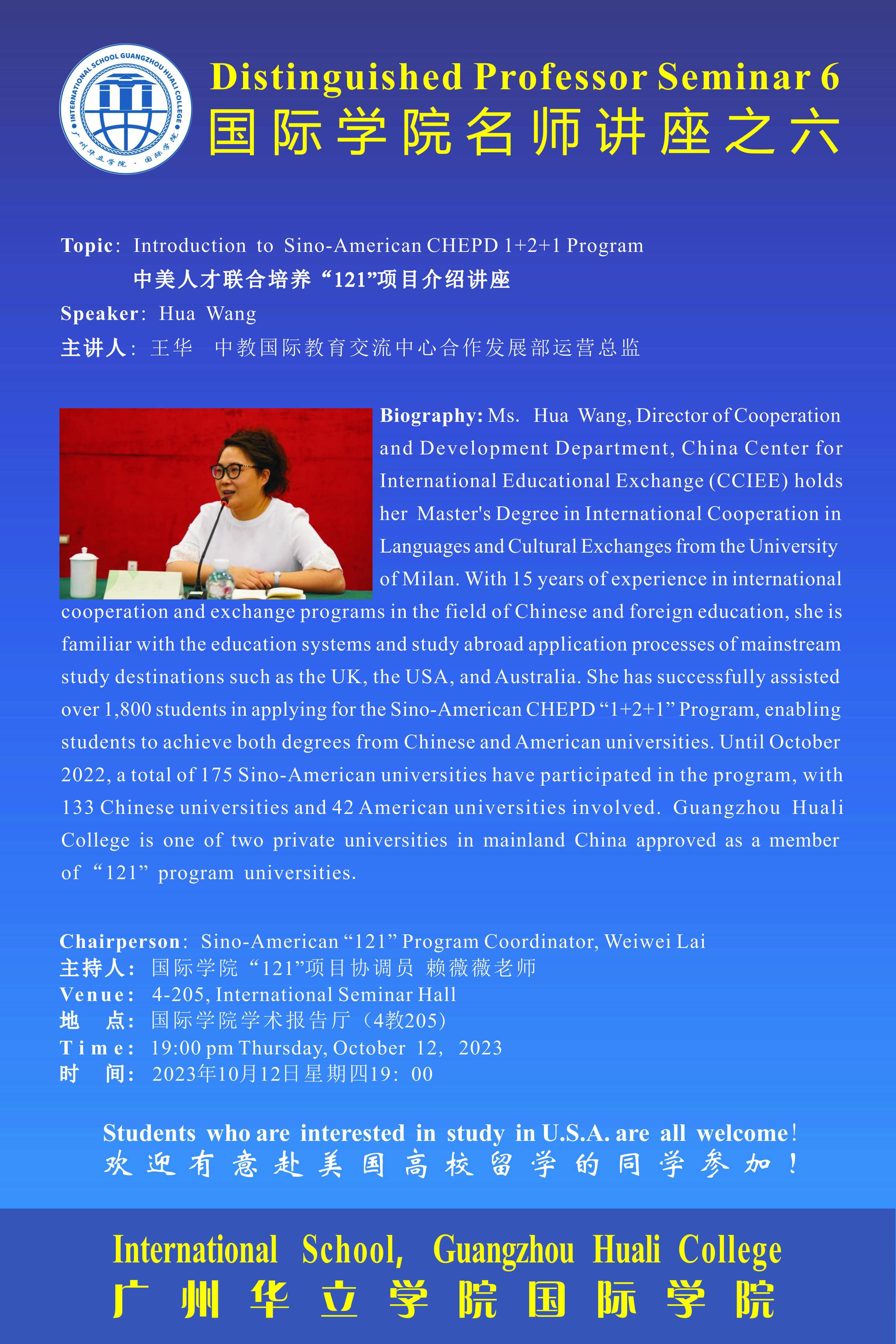广州华立学院科研大会系列讲座之国际学院名师讲座之六:中美人才培养计划“121”项目介绍 发布时间:2023-10-11 12:35:38 浏览次数: 次 【字体:小 大】 终审:国际学院(中文) 分享到: 【打印正文】