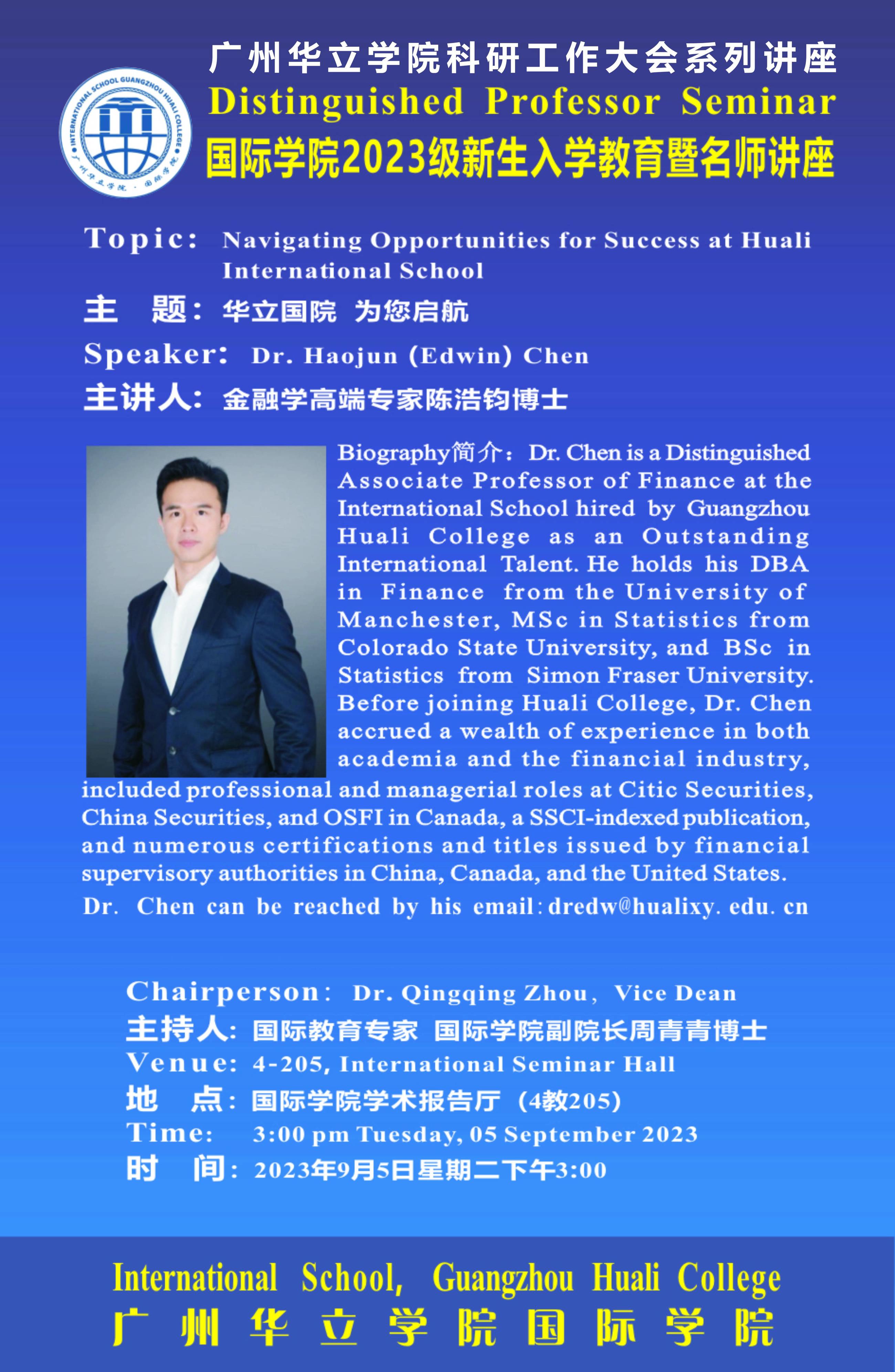 广州华立学院科研工作大会系列讲座之国际学院2023级新生入学教育暨名师讲座 发布时间:2023-09-04 14:52:30 浏览次数: 次 【字体:小 大】 终审:国际学院(中文) 分享到: 【打印正文】