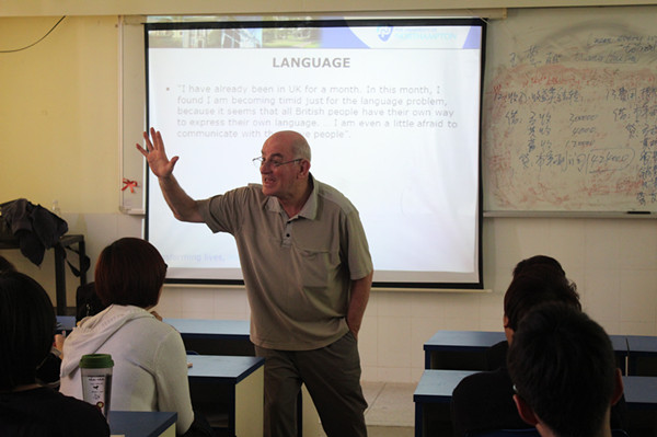 讲座以播放北安普敦大学国际交流生毕业仪式PPT作为开场。随后,Dave博士针对我院3+1项目的国际生,从风俗习惯、食品文化、语言差异等方面对英国文化进行了简单的阐述,并详尽介绍了北安普顿大学的地理位置、课程设置等学院概况和中外合作项目的相关资讯。与此同时,在讲话中他建议学生应实施有效的自我管理和重视能力的培养,并对身边事物保持质疑精神。Dave博士用缓慢的语速、幽默的语言配合生动的肢体动作,让讲座现场不时爆发出阵阵愉悦的笑声。