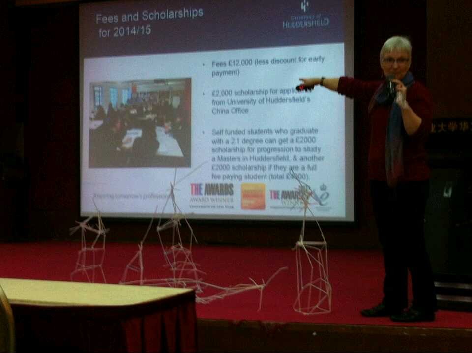 讲座伊始,Lyn Hall教授讲诉了哈德斯菲尔德大学的周边环境和地理位置,并就校内设施、学生活动和课程设置等学院概况向学生们进行了详细全面的介绍。
