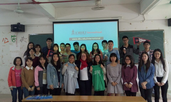 讲座上,DBU国际学生服务部主任 SUSIE播放了学校的视频,详细并且生动地介绍了DBU的留学生生活以及学习情况,还有美国的地理人文。在互动环节,SUSIE还赠予了勇于提问的学生小礼品。