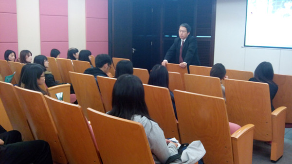 2015年4月09日星期四下午,台湾昆山科技大学国际暨两岸事务交流处国际长、国际学院院长丁仁方在华立科技园西校区行政楼6楼培训室为我院学生进行台湾一学期交流生项目宣讲。