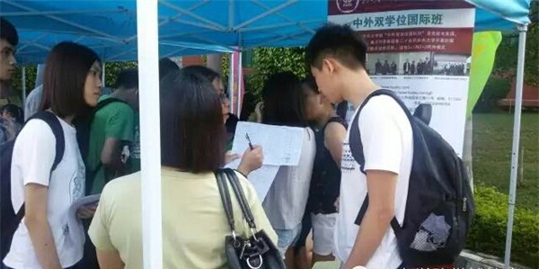 经过两天的辛勤工作,国际班的报到迎新工作圆满地完成。8月23号是我院新生报到的时间,但很多新生和家长都急不可耐得想见到即将入读的大学校园,所以22号一早就开始提前报到了。为了方便新生报到,综合楼广场搭起了遮阳帐篷,学校到处热闹非凡,国际班的报到处也是挤满了新生及家长。在事先做好充分的迎新准备情况下,国际班新生报到井然有序地进行。国际交流中心的刘主任、国际班宋老师,辅导员及班主任都亲临现场接待,为学生及家长解答各种疑问,让他们更好地了解我院国际班的实际情况和教学模式。国际交流中心周到的服务和有序的安排,给家长和新生留下了深刻而美好的印象,真正让他们感受到了学院对他们的重视。
