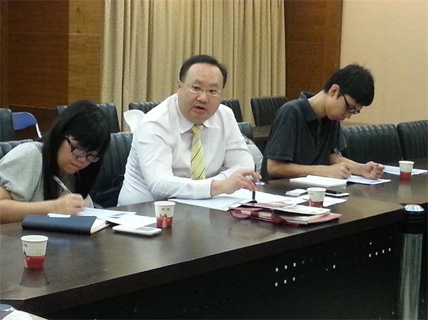 双方代表就我院与台湾德明财经科技大学的一学期交流项目合作进行了讨论。首先王院长对嘉宾的来访表示欢迎,并分别详细介绍了我院的办学情况以及学院的发展前景。德明财经科技大学的卢博士也带来了其校方徐守德校长的问候,并介绍了其大学的优势,并期待与我院合作交流项目。随后双方就学术交流与合作的细节进行了讨论。卢博士还热情邀请我院领导赴台参观其学校。会议结束后,双方合影留念。