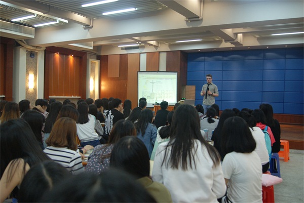 2016年4月7号下午3点半,我院国际交流中心邀请了合作院校哈德斯菲尔德大学的外教Saul Higgins 来我院,在四号报告厅与国际班的学生一起举办复活节PARTY.