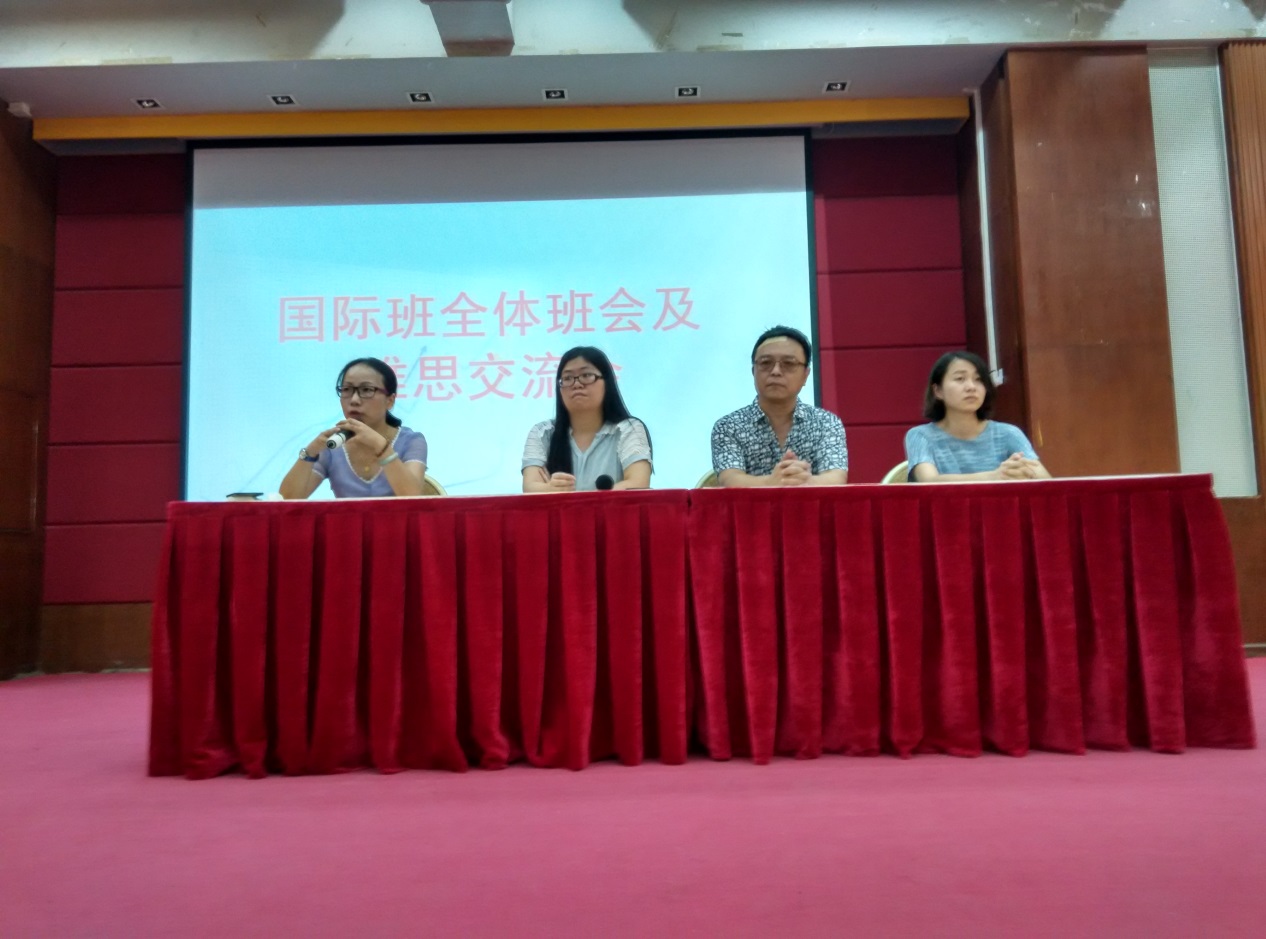 由于16级国际班人数大幅增多使国际部阵营空前壮大,国际部特地召开这次大规模的班会。这说明了我们的教学成果以及办学优势得到了大家的肯定。希望16级国际班的同学能尽快适应大学生活,尽早融入国际班这个大家庭。