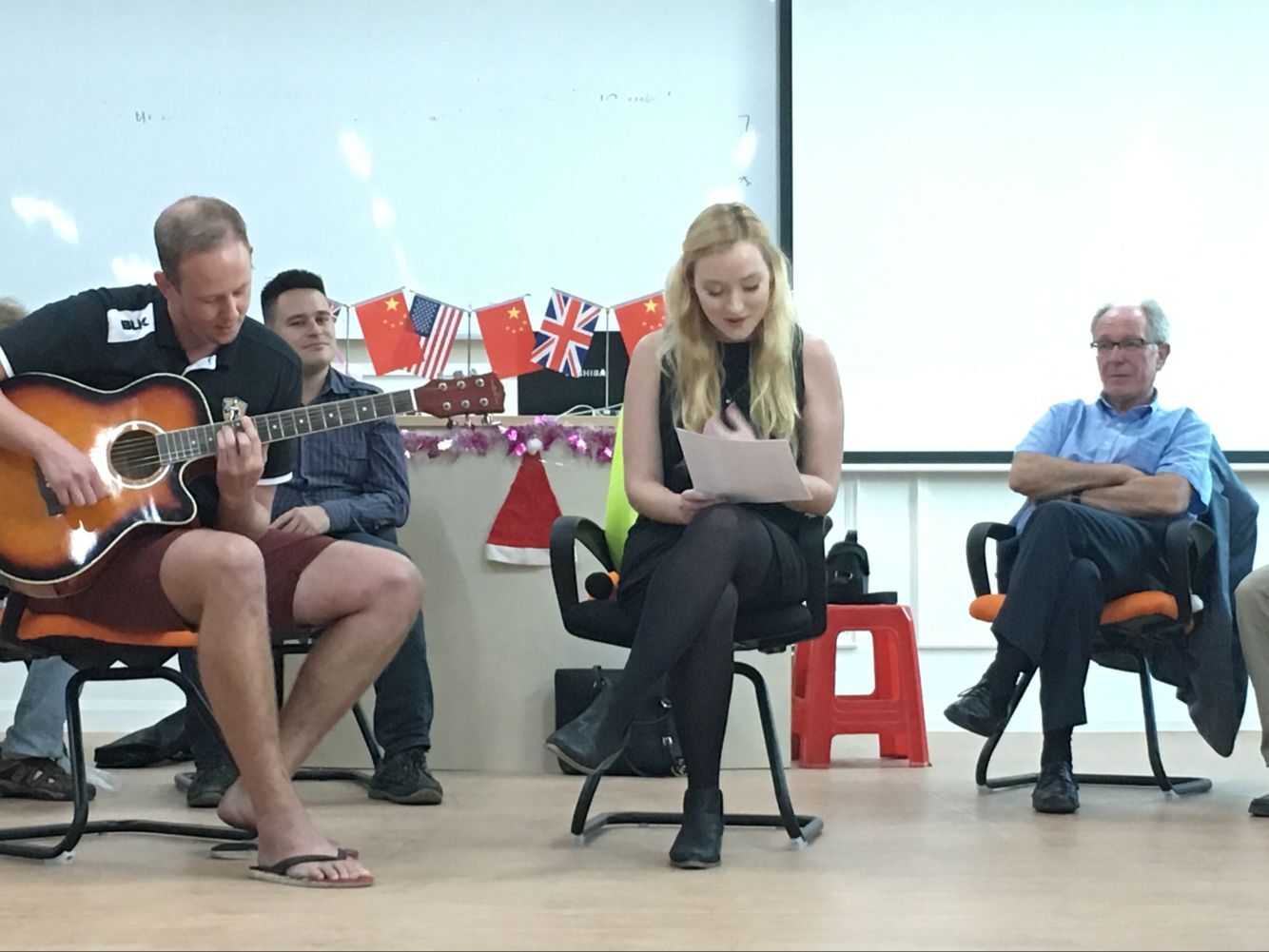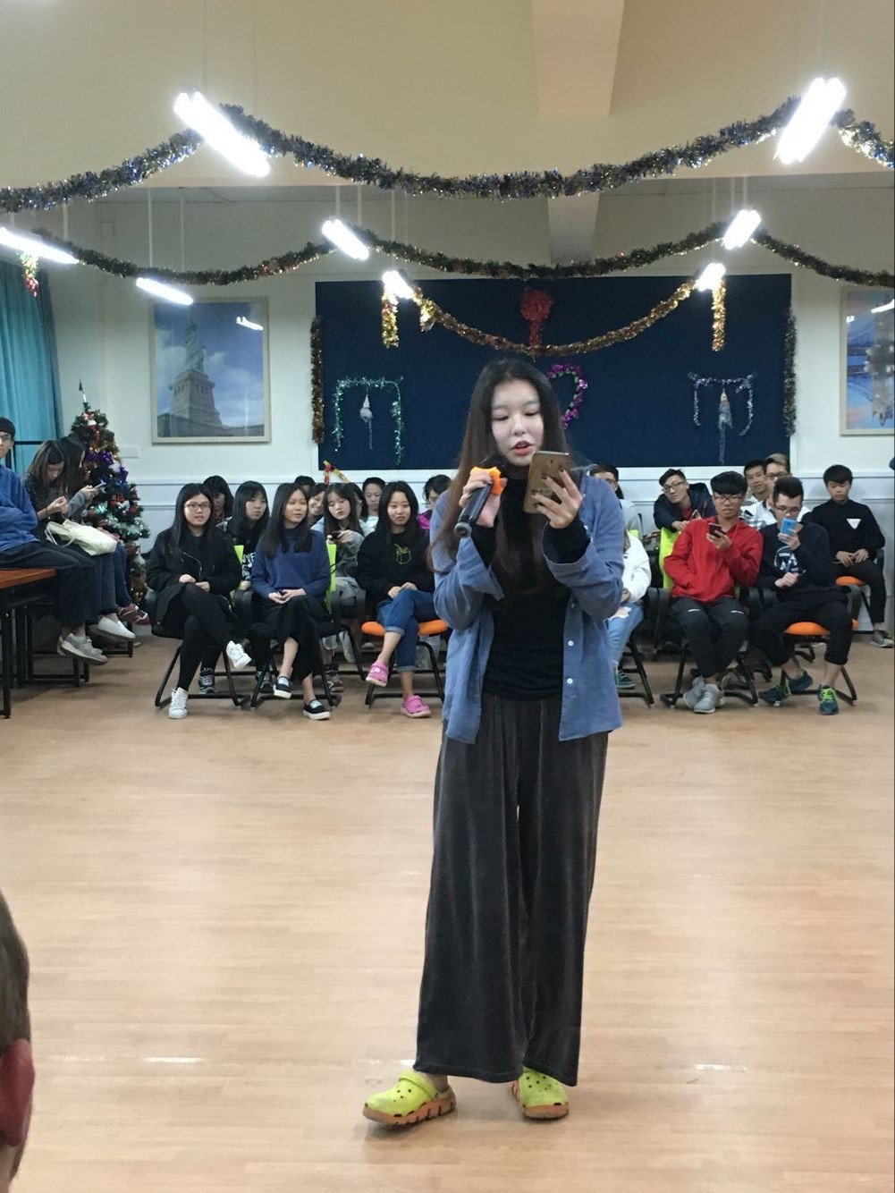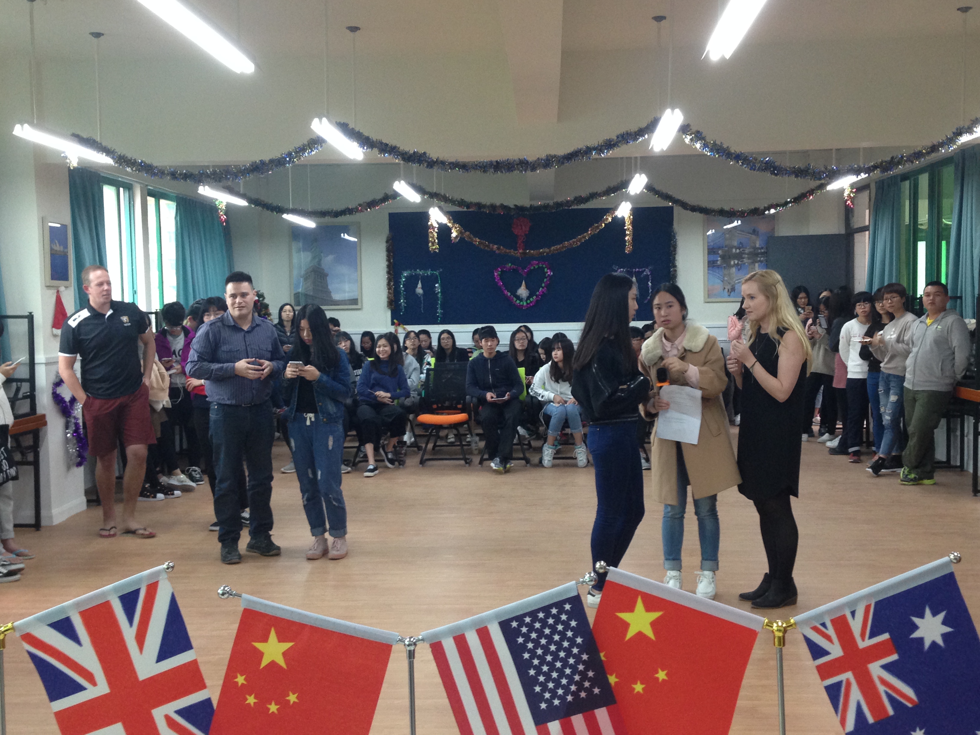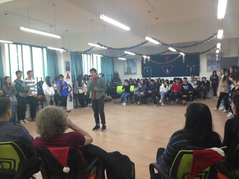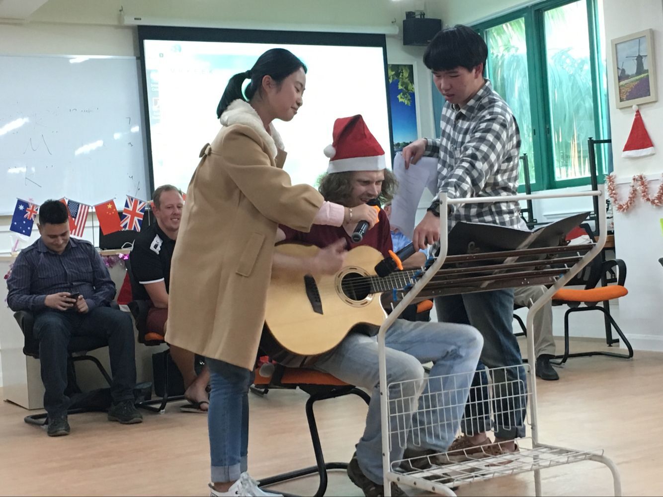 随着一首Jingle Bell Rock! 响起,愉快的圣诞节派对开始。在场的学生和外教们欣赏了一场精美绝伦的视觉上与听觉上的盛宴。首先,学生Jessica与Ben主持了这次派对,跟大家讲述了中西节日的异同并送上了诚挚的节日祝福。接着进入表演环节,国际班学生与外教Rosie和她的丈夫Hayden以及外教Adam带来了动听的歌曲和搞笑的小品。
