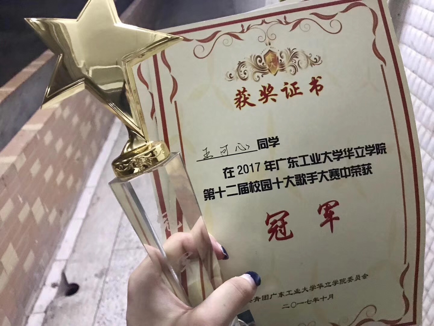 热烈祝贺王可心同学获学院十大歌手冠军 作者:国际交流中心 发布时间:2017-10-26 00:00:00 浏览次数: 次 【字体:小 大】 2017年10月26日晚,广东工业大学华立学院举办了第十二届校园十大歌手大赛。本次大赛分为两个环节,第一环节的比赛中,5号选手王可心同学以一首载歌载舞的摇滚曲进入第二轮环节的决赛。王可心同学第二首演唱的曲目是《Rolling in the deep》,她的高音清澈嘹亮,还有院模特队的表演,令人印象深刻。经过两轮比赛下来,2015级国际班王可心同学最终夺得比赛的冠军。 分享到: 【打印正文】