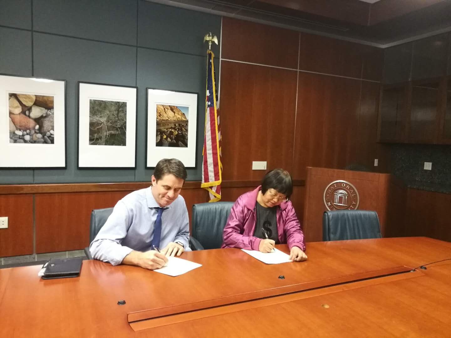 双方就商科专业3+1双学位、理工科专业2+2双学位和短期交流项目合作进行了探讨,并现场签订MOU,郭院长代表学院向UN赠送礼品。参加双学位项目学生可申请高额奖学金,还可免试申请读研。