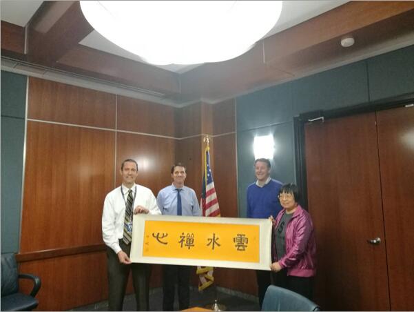 2017年11月15日,我院副院长郭颂平和国际交流中心刘主任应邀赴美国加州国立大学( National University,简称NU)商谈合作,受到了国际学院院长Bob Benson、副院长Will Poarch和国际项目主任Gregory Nolan热情接待。