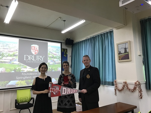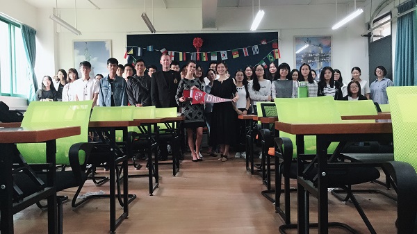 美国杜瑞大学代表Ms. Beth Nichols-Beisner到国际班举行讲座 作者:国际交流中心 发布时间:2018-10-30 00:00:00 浏览次数: 次 【字体:小 大】 信息内容2018年10月26日,美国杜瑞大学国际招生办主任Ms. Beth Nichols-Beisne来到我校,向我校国际班学生介绍杜瑞大学的概况。杜瑞大学建校于1873年,是一所历史悠久的私立院校。简单的介绍之后,Beth就同学们的问题进行答疑。 图为我院代表与杜瑞大学代表互赠纪念品 图为国际学院师生代表与杜瑞大学代表合影留念 分享到: 【打印正文】