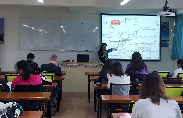 Eva表示非常高兴能给国际班的同学开宣讲会,向同学们简短地介绍了北密德萨斯大学的基本概况。密德萨斯位于伦敦,地理位置优越,学校配套设施齐全,学术氛围浓厚。以及密德萨斯给予国际留学生的福利政策。