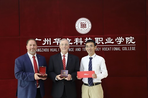 2019年6月21日上午,美国西阿拉巴马大学校长Dr. Ken Tucker和文学院院长、国际项目办公室主任Dr. Mark D. Davis以及广东金融学院外事办主任刘沛富和广东金融学院诺丁汉国际合作中心主任刘宏一行4人来我校进行友好访问。广州华立投资有限公司张智峰董事长、叶雅明总经理、广东工业大学华立学院王学军副院长、广州华立职业学院刘庄校长、马龙海常务副校长等领导热情接待了国际友人。会议由广州华立职业科技学院马龙海常务副校长主持,双方针对具体合作事宜展开了洽谈,外教Prof. Rico,国际交流中心及相关人员参加了会议。