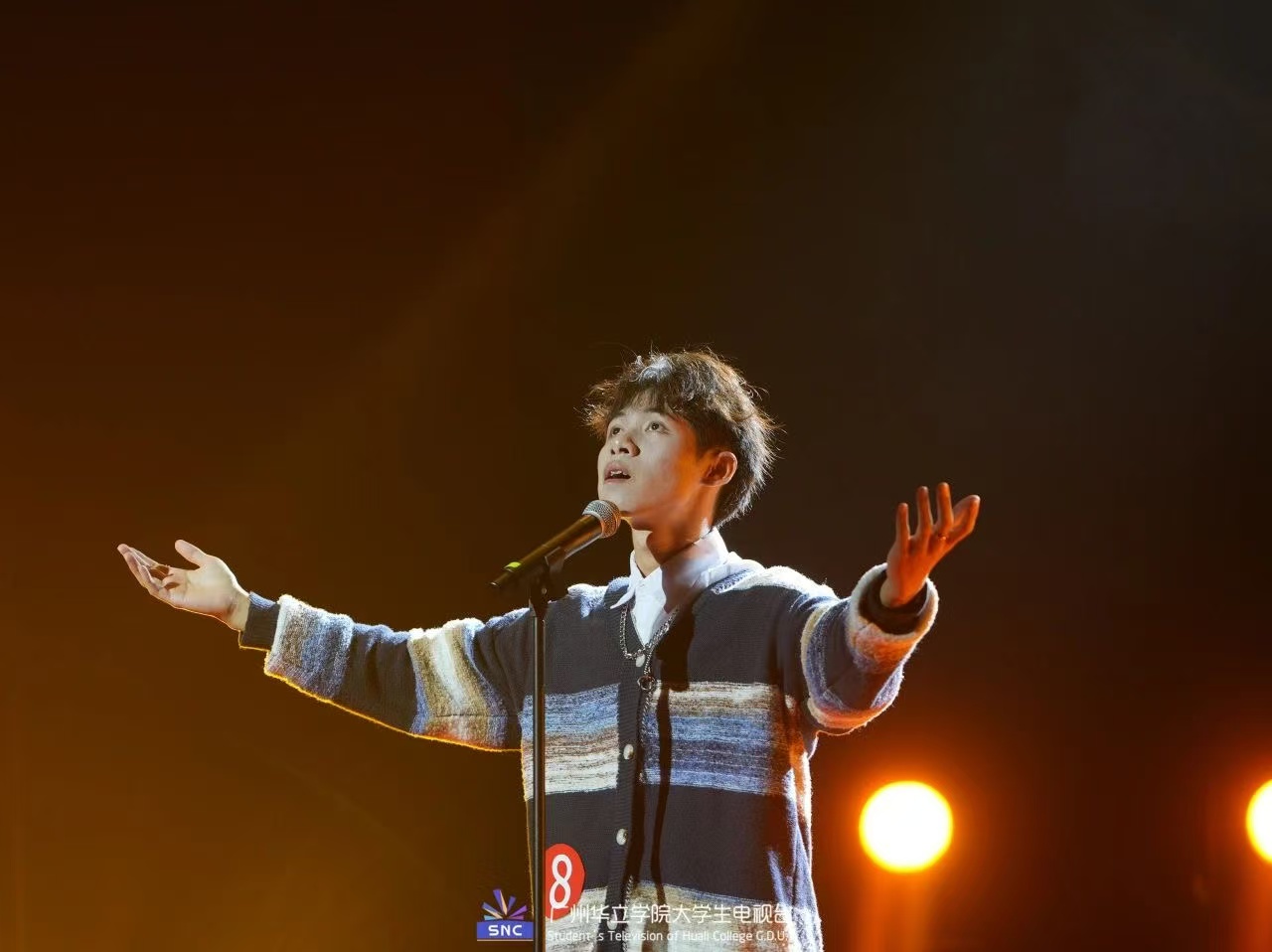 2024年11月26日晚,广州华立学院在文体楼举行了“校园十大歌手”比赛决赛。此次决赛经过层层选拔,全校共有15名选手脱颖而出。国际学院23网新G1班张奕诚同学,以雄厚的唱功和充分的大赛经验,入围决赛。