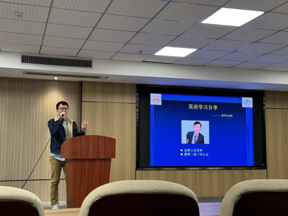 澳大利亚留学回国的会计学专业老师黎哲昆讲述了他自己如何从留学前一个英语小白提升到留居澳洲多年后澳大利亚二级口译水平的励志故事。他的逆袭之路感人至深,赢得同学们自发的阵阵掌声。
