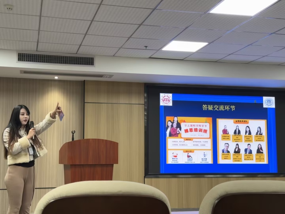 在全球化浪潮下,掌握英语已成为通向世界的金钥匙。雅思英语(IELTS)合格是出国深造的必备条件,尤其是世界名校硕士、博士“直通车”项目,雅思英语必不可少。为帮助华立广大学子更好地掌握雅思英语学习技巧,拓展国际视野,早日迈进国际知名学府,广州华立学院国际学院于2024年3月6日晚七时,在第四教学楼205举办了“全球化视野,畅游英语海洋—国际学院雅思学习沙龙”活动。院内外雅思兴趣同学和学院部分雅思“高手”老师近百人共同出席活动。活动由国际学院留学回国雅思金牌主讲教师兼学院行政主管陈竞翔老师主持。