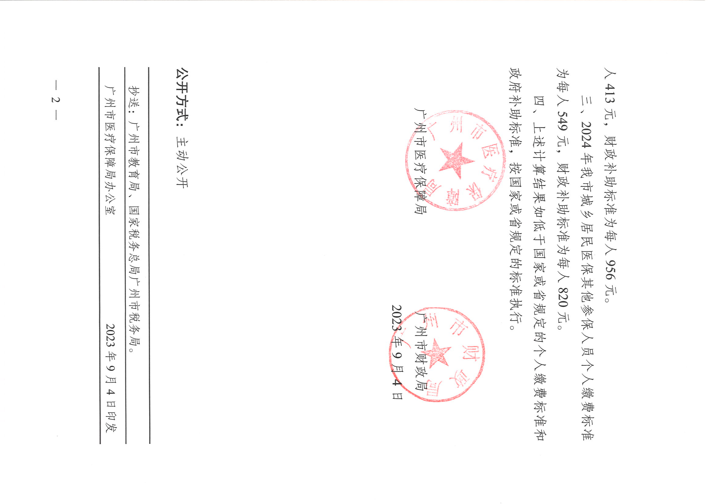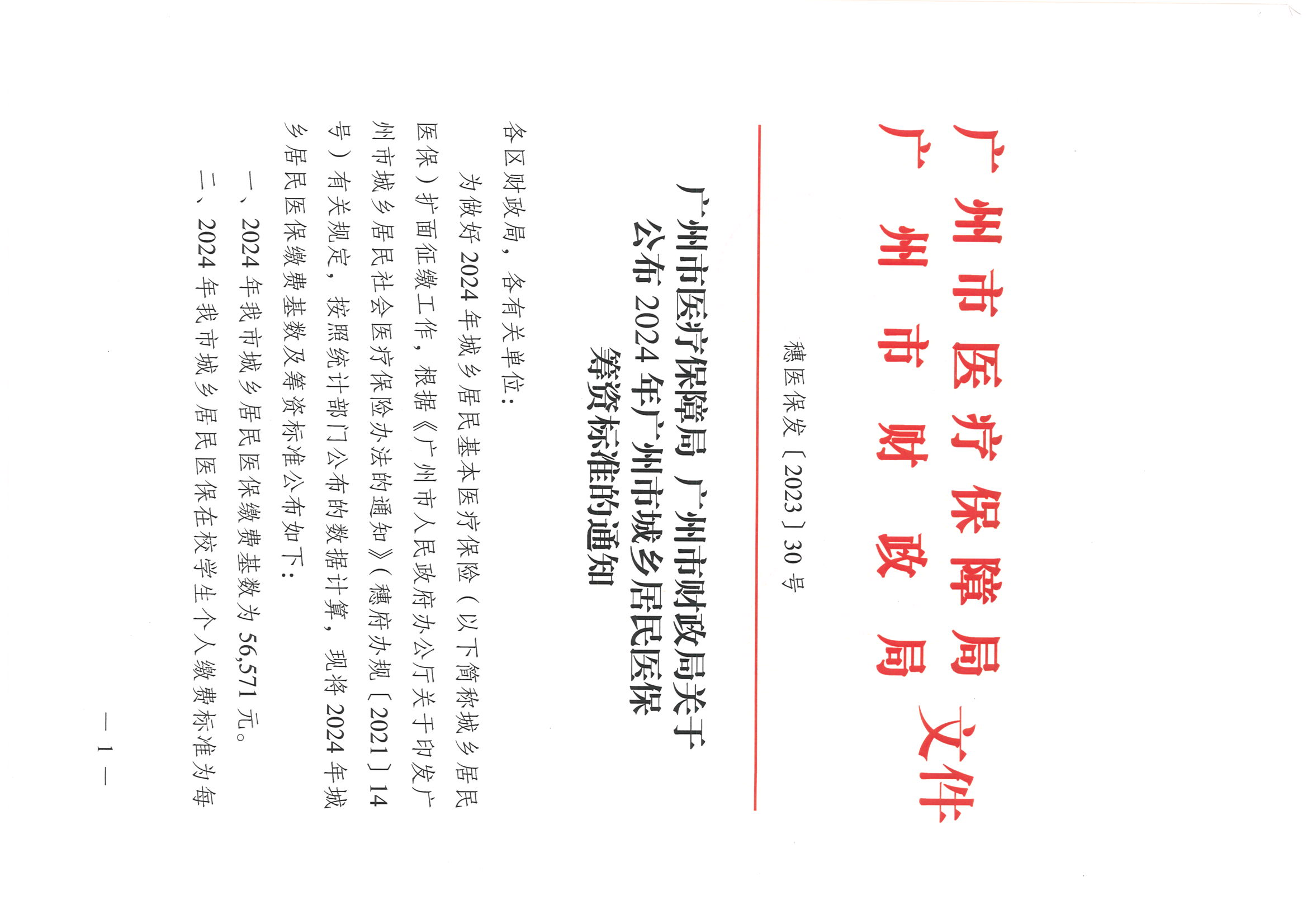 广州市医疗保障局 广州市财政局关于公布2024年广州市城乡居民医保筹资标准的通知 发布时间:2024-02-22 16:54:03 浏览次数: 次 【字体:小 大】 终审:国际学院(中文) 分享到: 【打印正文】