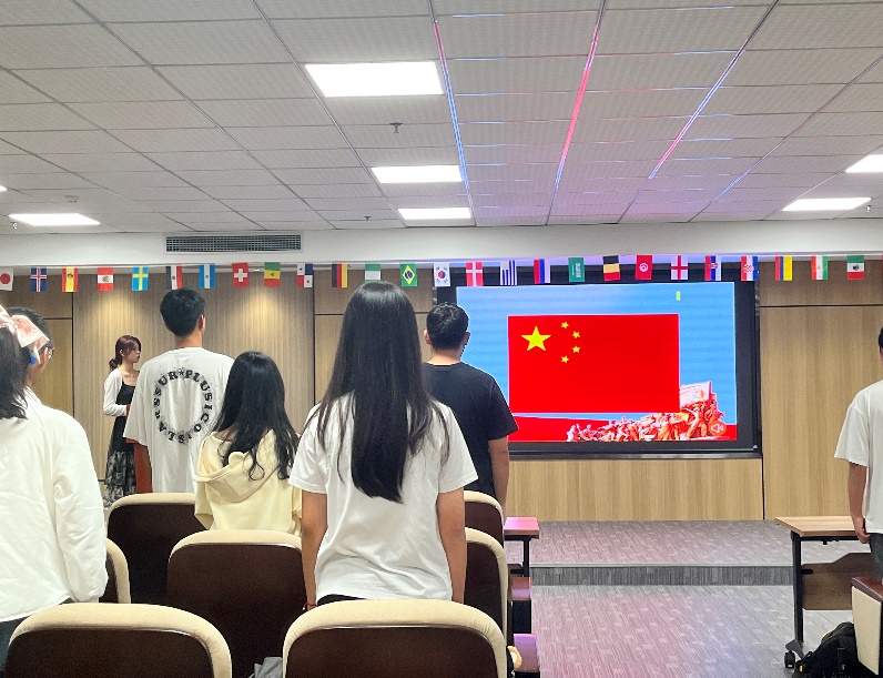 会议伊始,全体成员面向国旗,奏唱国歌。